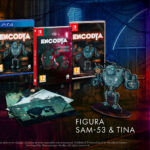 La edición física Neon Edition de ENCODYA para Nintendo Switch y PlayStation 4, incluye una funda especial, un set de postales y una figura de cartón de SAM-53 y Tina de 15 centímetros aprox.