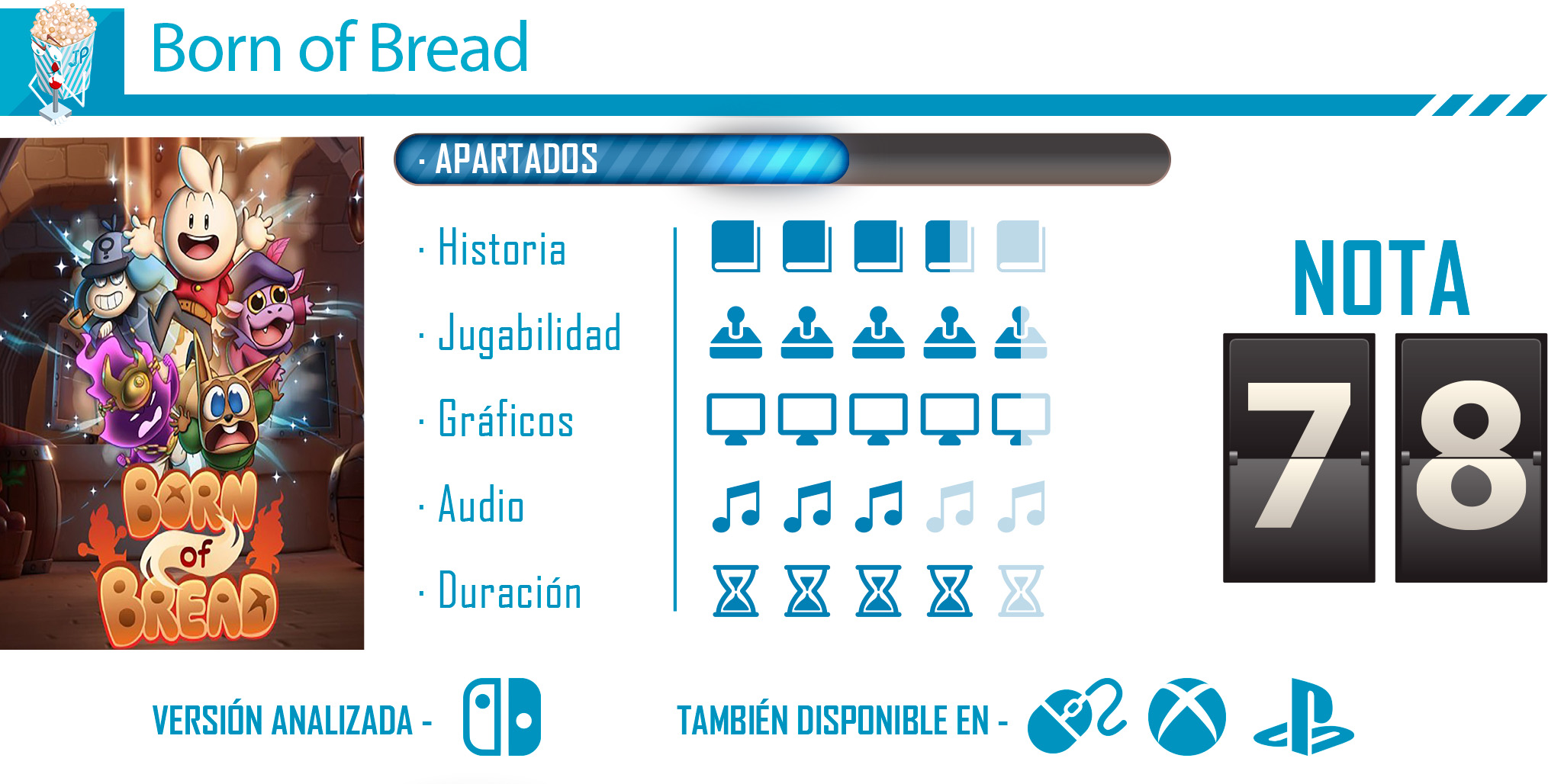 En Born of Bread nos encontramos con un RPG entretenido, con muchas posibilidades de exploración a través de las misiones secundarias y accesibles a un gran rango de jugadores/as, y con unos gráficos que hacen de él un juego muy simpático. Como contraparte, al ser un juego más orientado a un público juvenil, la historia es bastante predecible, pero se puede disfrutar igualmente. Para finalizar, algo que le da valor a Born of Bread es como refleja que una red de apoyo nos puede ayudar a cumplir nuestras metas y ser mejores, o bien ayudarnos cuando recibimos comentarios crueles y expectativos imposibles. Sin duda, una gran moraleja.