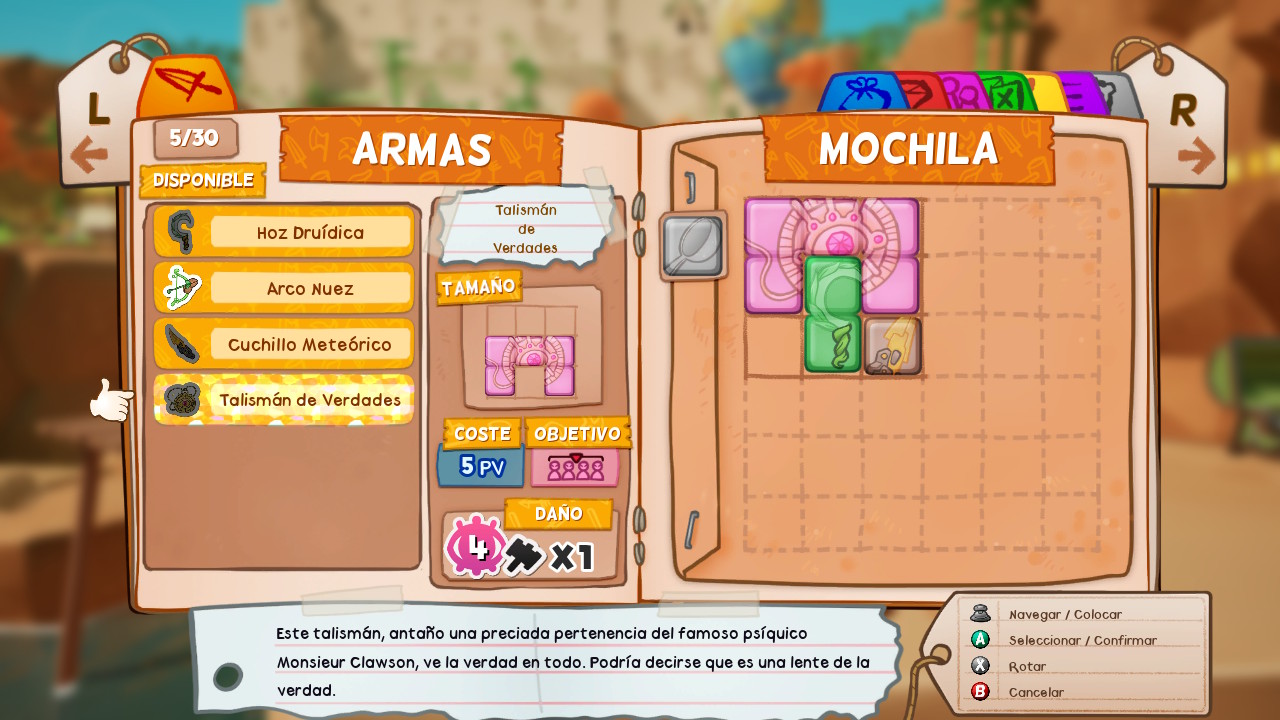 Por último, también podremos ver la ficha de los personajes, administrar el árbol de habilidades de los compañeros de Pan, además de consultar el mapa y el desglose de las misiones. Estos puntos de habilidad los obtendremos al encontrar a los niños de una mujer misteriosa que encontramos a la luz de hogueras verdes, que tienen forma de lagartija.