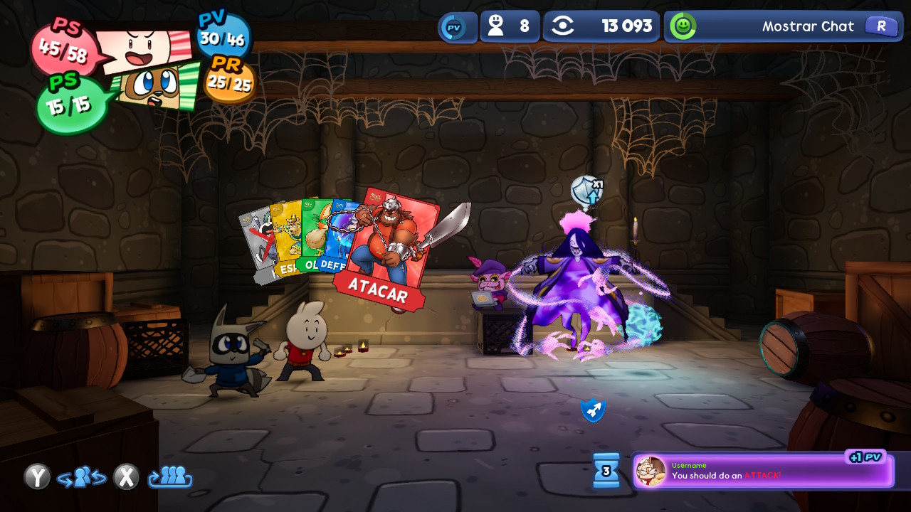 En los combates por turnos, podremos atacar, defender, hacer un especial, usar un objeto o huir. Para ello tendremos acciones que consumen Puntos de Voluntad (PV) y Puntos de Resistencia (PR). Los ataques normales pueden consumir PV y PR (en este orden), mientras que los especiales consumen PR. Además, podremos ver un chat de personas no reales comentando el combate, y en ocasiones nos aparecerá en la parte inferior un mensaje que nos pedirán hacer una acción determinada, especificándonos el número de turnos que tenemos para completarla y la recompensa.