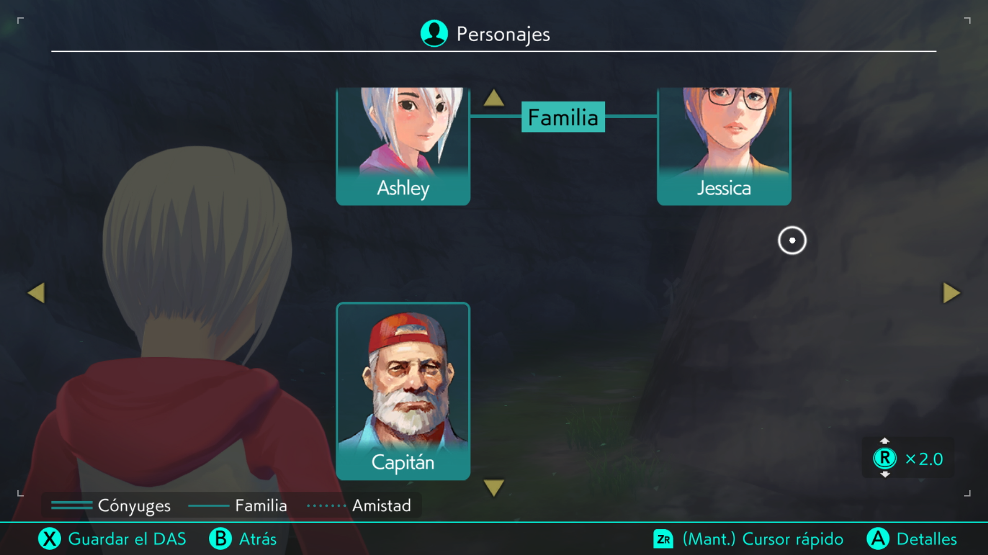La mayor peculiaridad de Two Memories es el Dual Another System o DAS, un dispositivo que portará la protagonista y que sirve como un menú o interfaz y que nos permitirá hacer fotografías de objetos clave o buscar pistas visuales que nos ayuden a continuar desentrañando misterios. Además, desde el DAS también podemos consultar la ficha de las diferentes personas que nos encontremos, para conocer un poco más de ello y del contexto de esta apasionante aventura.