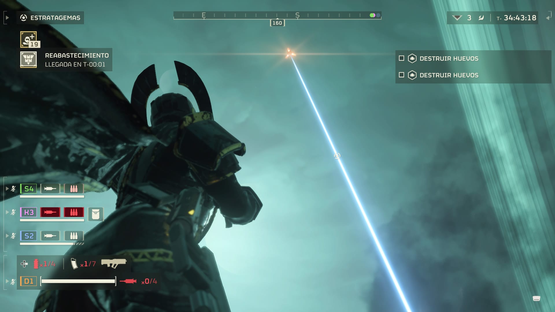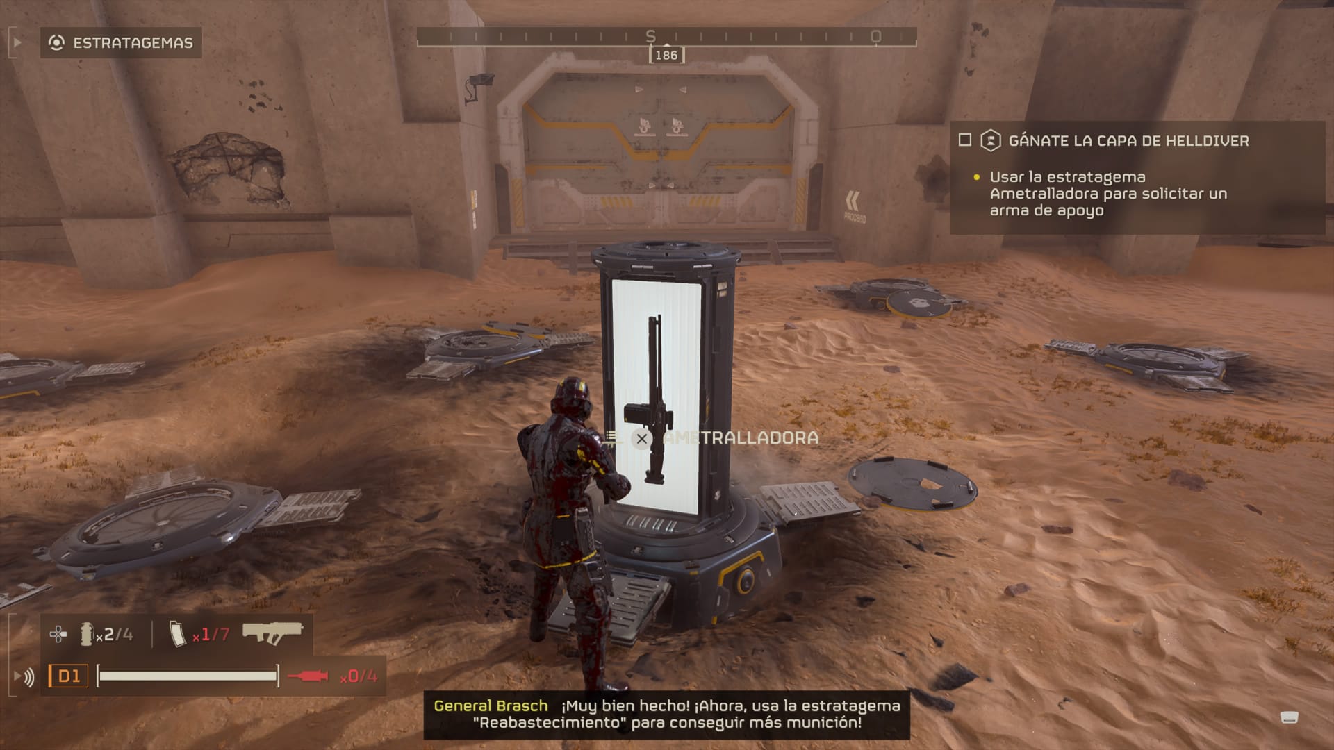 El sistema de balizas es algo que utilizaremos mucho durante nuestras partidas, porque también nos servirá para solicitar a nuestra nave munición y otros útiles para el combate. El Helldivers II es muy fácil quedarse sin munición, dispararemos mucho y en todas direcciones y en el escenario no hay donde coger esto, salvo de algún compañero caído o en alguna otra ocasión que sí lo encuentres. Por lo que si queremos restaurar nuestros cargadores, deberemos solicitar que nos mande una baliza con ella.