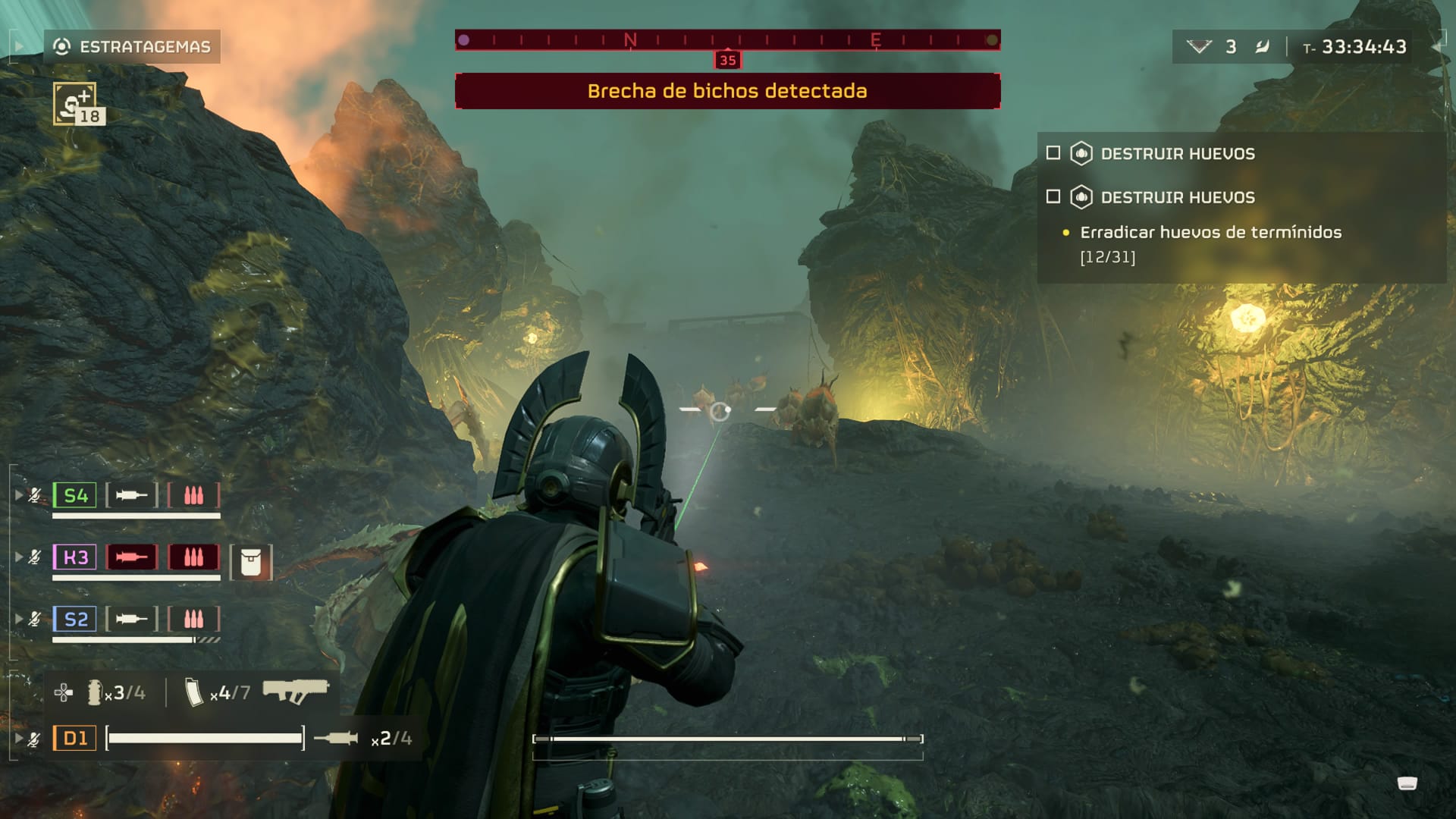 Y para cumplir nuestros objetivos precisamente tenemos que acabar con el mayor número posible de peligros que se nos presente y eso quiere decir que deberemos tener muy en cuenta las resistencias y vulnerabilidades de estos. Preciamente, uno de los elementos que hacen muy divertido a Helldivers es el combate contra los enemigos, por su variedad, pero también por su diversidad. Como hemos comentado, hay principalmente dos fracciones lo que nos pondrán las cosas difíciles, los Termínidos y los Autómatas, y, a la hora de enfocar el combate contra cada uno de ellos, tenemos que tener en cuenta cómo se comportan para actuar en consecuencias.