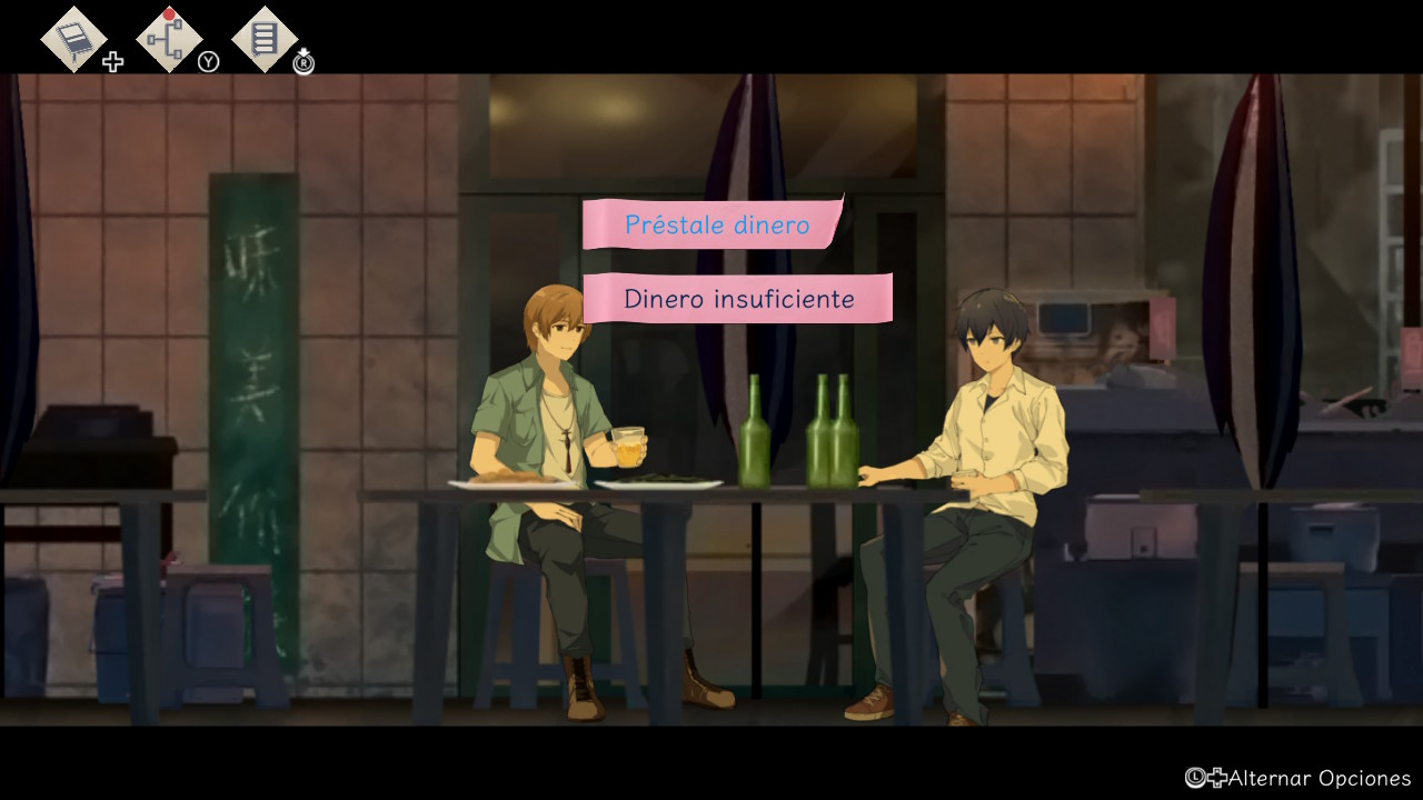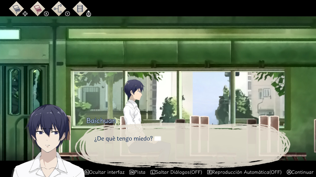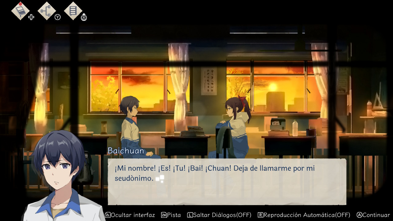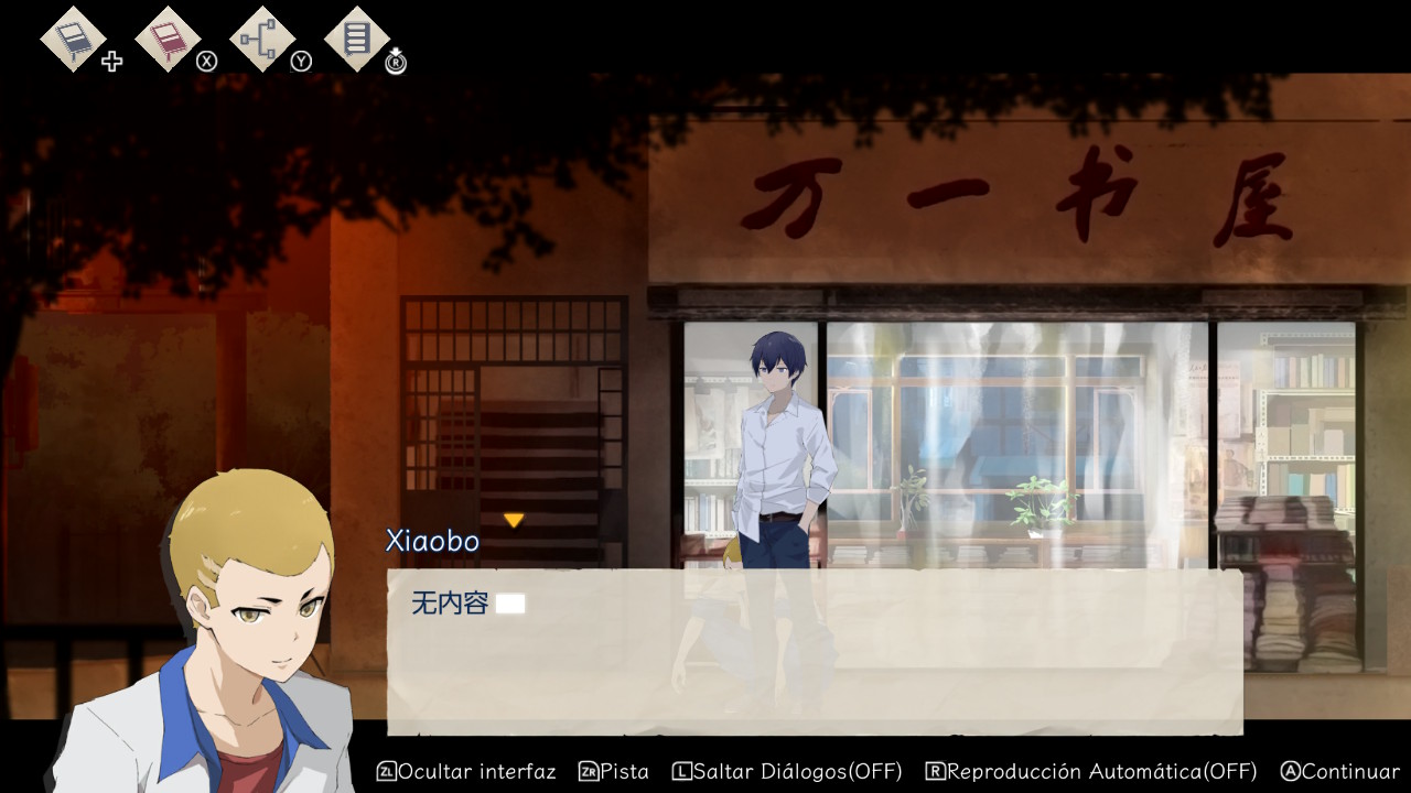 Además, contaremos con un diario conjunto que tenía el protagonista con esa persona, en los que aparecerán conversaciones que tuvieron en el pasado. Éstas irán apareciendo conforme vayamos avanzando en la investigación. También lo iremos rellenando en momentos específicos con las conclusiones de Baichuan, teniendo que marcar la palabra correcta para continuar.