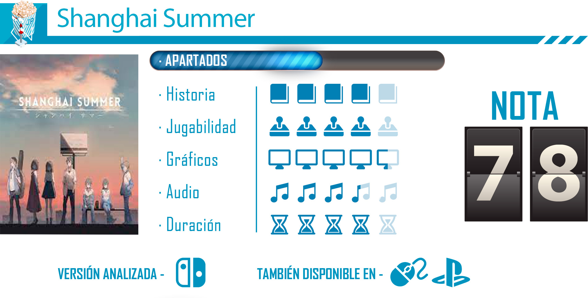 La visual novel Shanghai Summer cuenta con una historia potente, que te hace querer saber más y más para desentrañar completamente la historia que envuelve a Baichuan. Aunque el trabajo artístico es muy bueno y la jugabilidad hace que sea entretenido, al contar con una traducción automática puede embarrar la experiencia de juego, pero contando con ello y su duración, es un título muy recomendable si sois fans de este género, y con una buena relación calidad/precio.