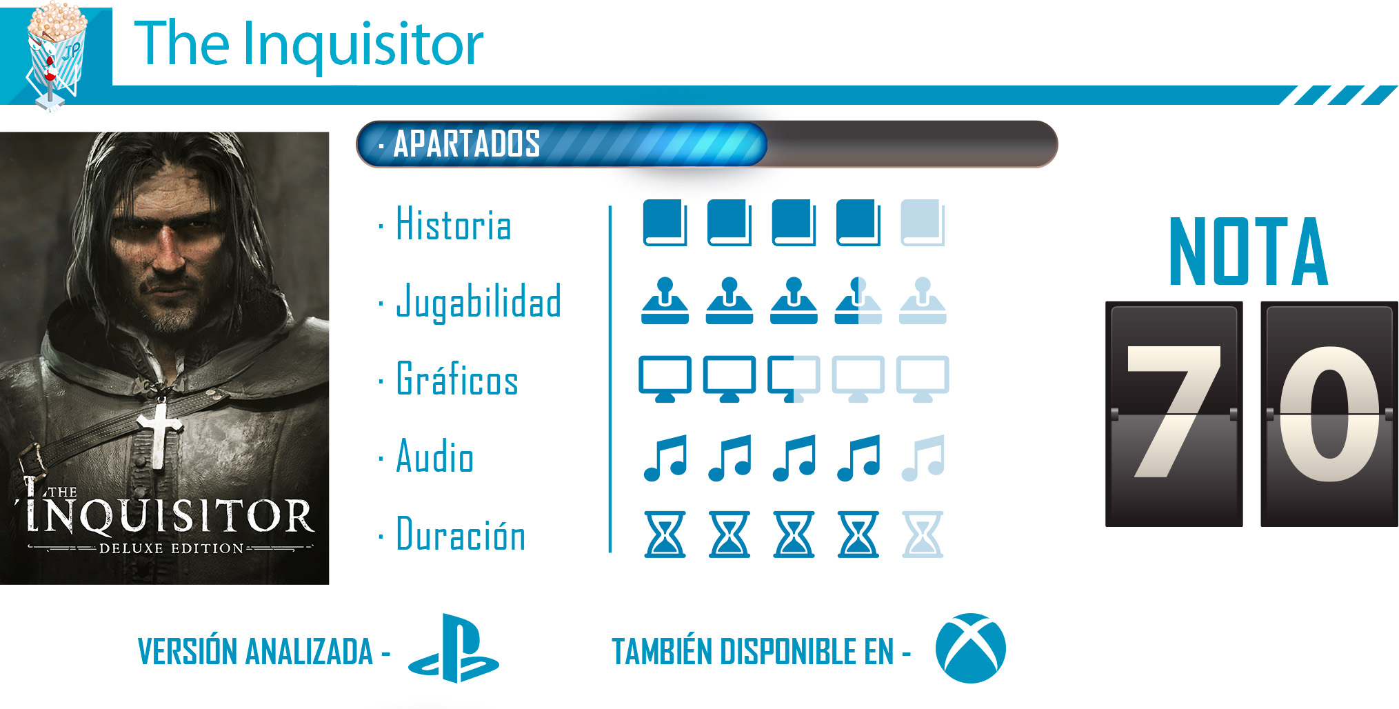 The Inquisitor es una aventura arriesgada, valiente e interesante, con una narrativa muy llamativa pero que queda opacada por una puesta técnica un tanto pobre y limitada. Es un título que se ve lastrado quizás por los recursos económicos del estudio polaco, pero que, dejando al margen las carencias que puedan presentar, y viéndole con mente abierta, tenemos una aventura que engancha y que, una vez dentro de su mundo es difícil salir de él.