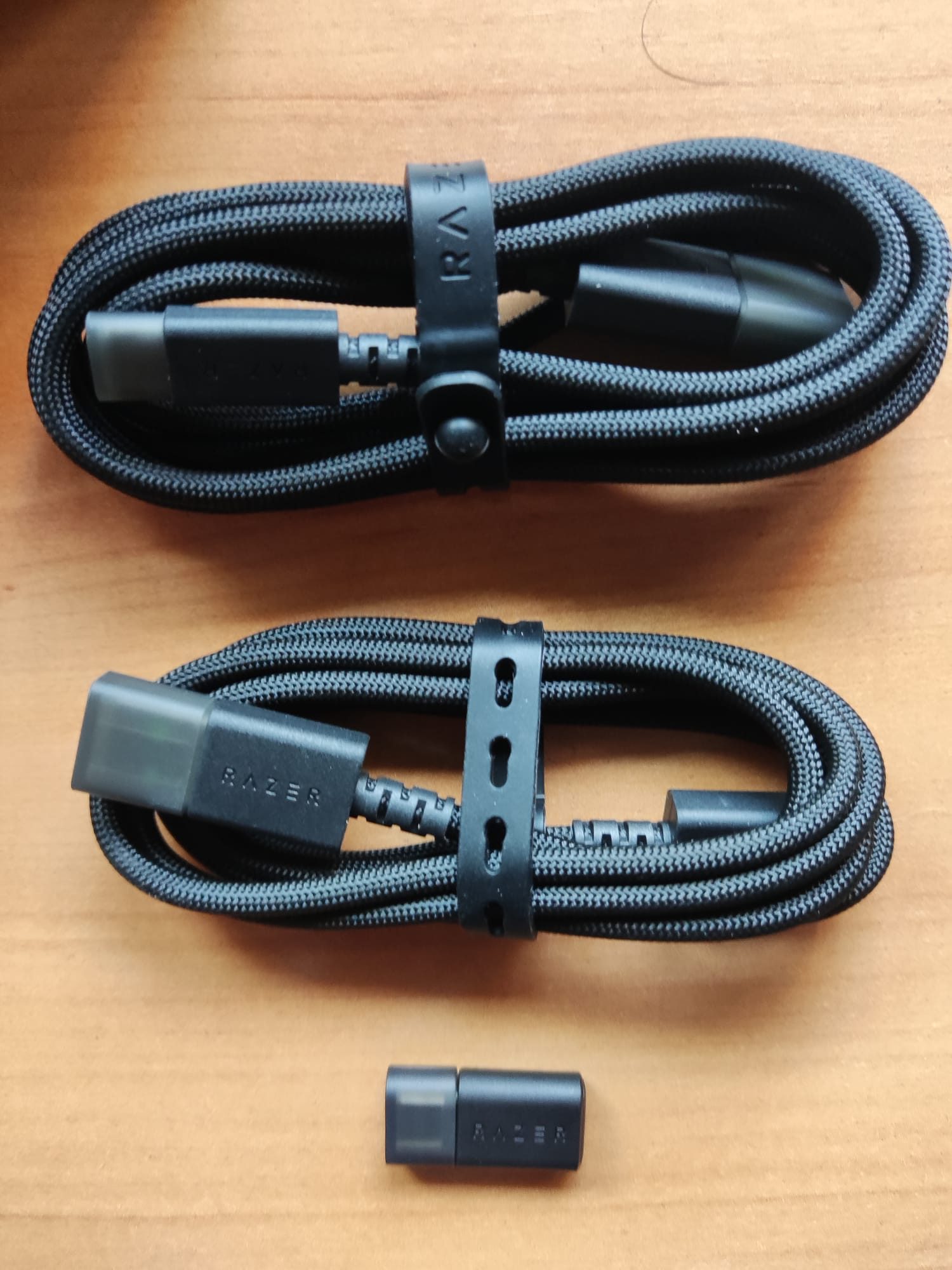 Respecto a ese cableado, y dispositivos de conexión se incluyen tres tipos, el Razer HyperSpeed Wireless Dongle USB-C, un adaptador USB-C a USB-A y el cable USB-A a USB-C.