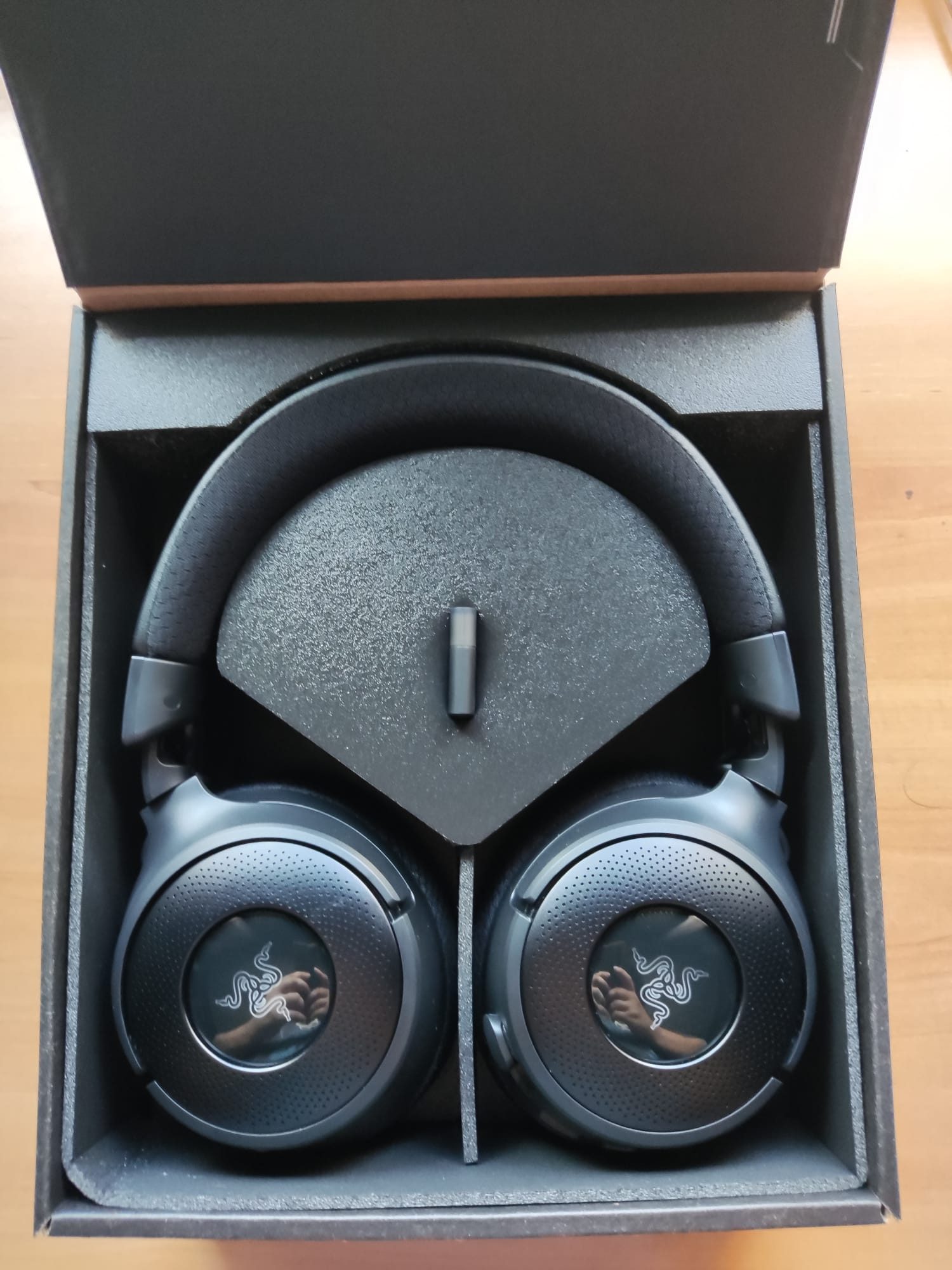 Abriendo esta caja es donde ya nos vamos a encontrar los headsets Kraken V4. Como se puede apreciar, todo viene muy bien protegido en espuma blanda para que el periférico no reciba ningún tipo de daño en el transporte y sirva como propio almacenamiento de los Kraken V4 si queremos llevarlo con nosotros.