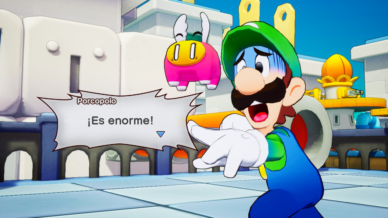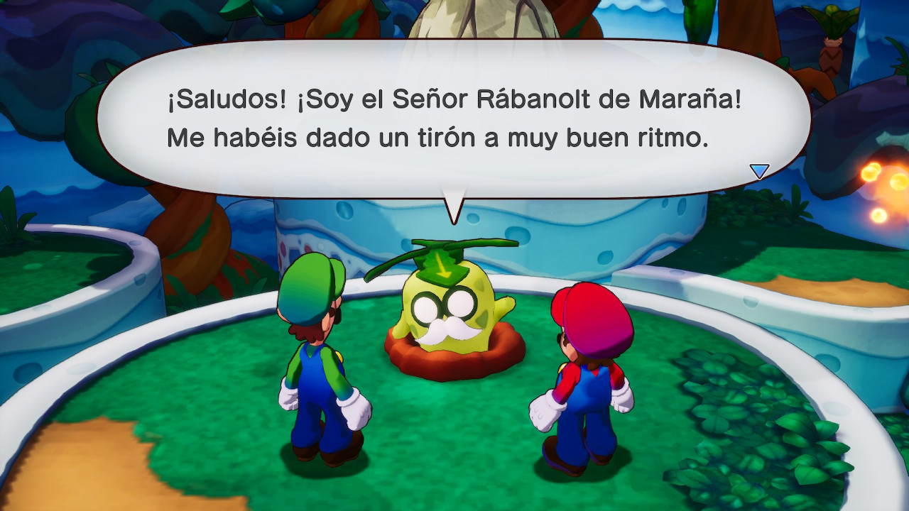 Como siempre los juegos de Nintendo tienen un gran trabajo de traducción, pero también de localización. Vemos como los juegos de palabras, nombres de enemigos o expresiones propias del español de España que no tienen sentido en otros idiomas han sido adaptadas al juego para tener sentido. Por ejemplo, cuando los hermanos aparecen en un momento determinado se usa la expresión “A buenas horas mangas verdes, y rojas también”, una expresión muy usada en español y adaptada a los colores de Mario y Luigi.