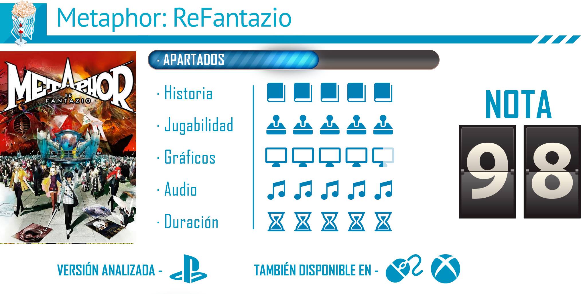 Poco más se puede decir de Metaphor: ReFantazio que no hayamos dicho ya. Es un juego perfecto, uno de los títulos del año que sin duda se ha situado en lo más alto de los JRPG. En un juego que engancha de principio a fin, tanto por su historia, sus personajes y su sistema de combates; una fórmula perfecta que se da una vez cada cierto tiempo y que esperamos que se convierta en otra piedra angular del estudio, junto con Shin Megami Tensei y Persona pues nos hemos quedado con muchas ganas de seguir explorando esa faceta medieval y disfrutar de las posibles historias en el futuro que tienen que contarnos.