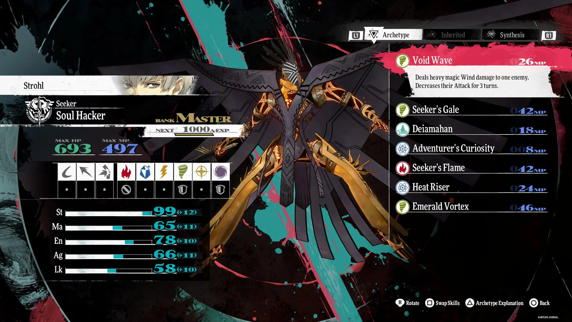 Y llegados a este punto tenemos que explicar qué son los Arquetipos. Pues bien, no son ni más ni menos que las clásicas clases que podemos encontrar en otros JRPG pero con un giro que las relaciona con las Personas o invocaciones de la saga Shin Megami, similitud que señalamos porque cumplen un rol parecido al de los arcanos, como el Mago, el Ladrón, etc. Cada arquetipo influirá en el desarrollo de los combates del juego, condicionando las armas que podremos utilizar, los hechizos, las fortalezas, pero también las debilidades.