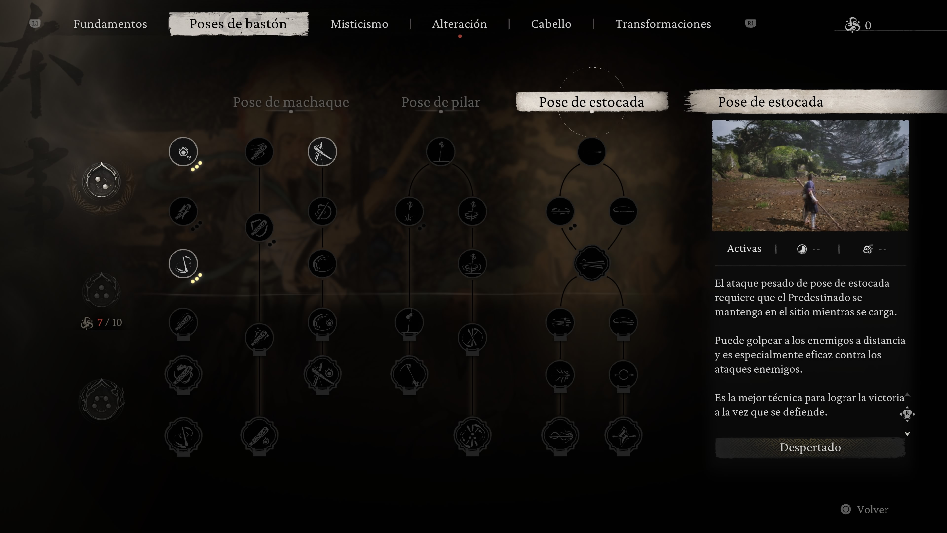 Por supuesto tenemos que hablar de la progresión del personaje que se da en distintas vertientes. Tenemos un árbol de habilidades bastante complejo que se centra en distintas disciplinas que podemos realizar con nuestro bastón, potenciar las estadísticas de nuestros hechizos o nuestras transformaciones. Este es otro de los aspectos que no hemos comentado, Wukong puede usar una de sus habilidades para transformarse durante un tiempo en otro personaje con otras habilidades completamente distintas, además debemos de contar que tenemos un ataque especial bastante devastador que nos permite transformarnos en algún enemigo ya derrotado.