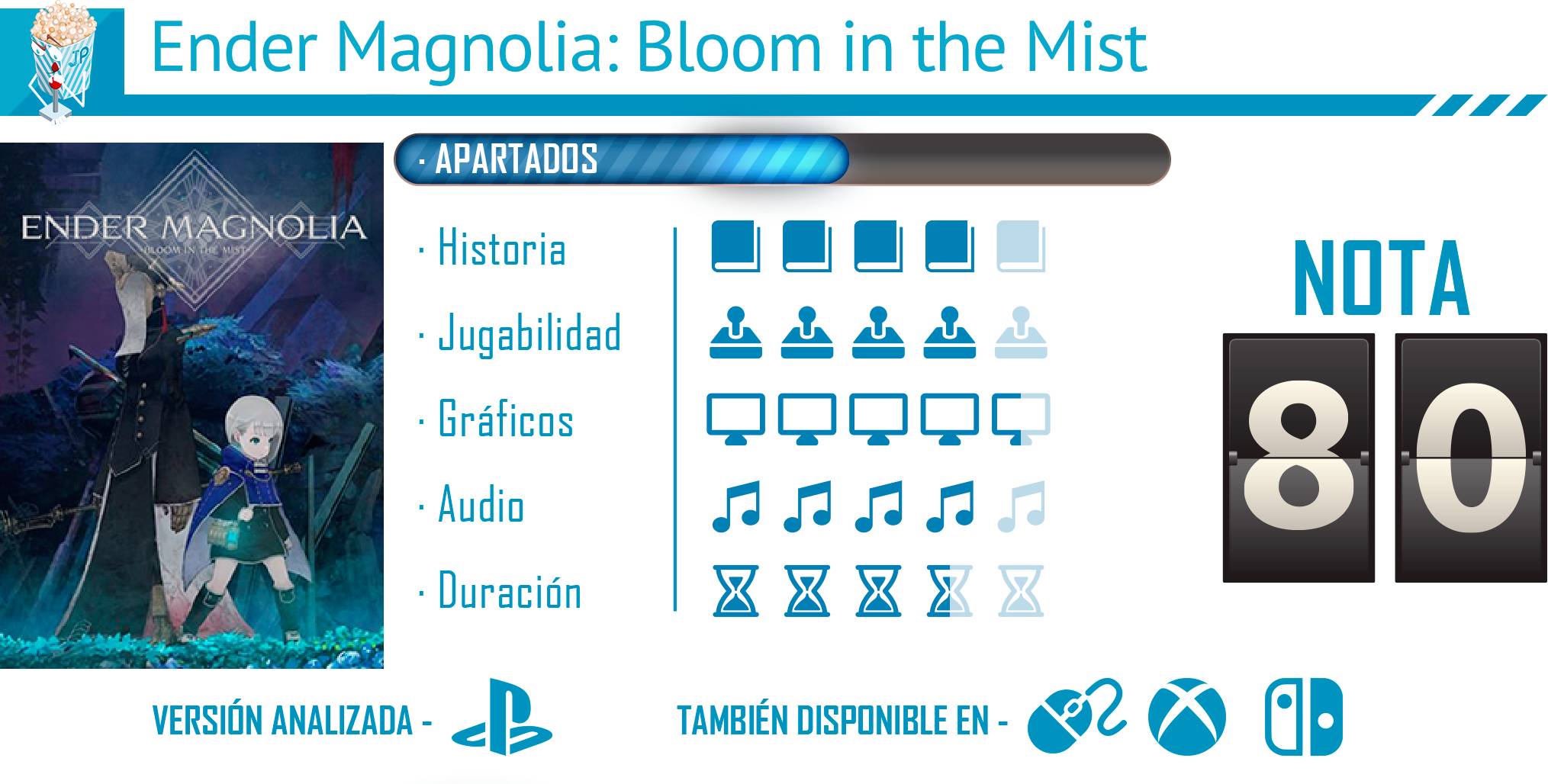 Ender Magnolia: Bloom in the Mist es un metroidvania que sobresale en varios aspectos, desde su exploración profunda hasta sus intensos combates. Con una historia que cautiva al jugador y una jugabilidad que ofrece tanto retos como momentos de personalización, el título es una secuela exitosa que expande el universo de Ender Lilies de manera significativa. Aunque ciertos detalles, como la falta de voces y algunos escenarios repetitivos, restan ligeramente de la experiencia general, el juego sigue siendo una obra sólida y recomendable para los fanáticos del género y aquellos que buscan una aventura única.