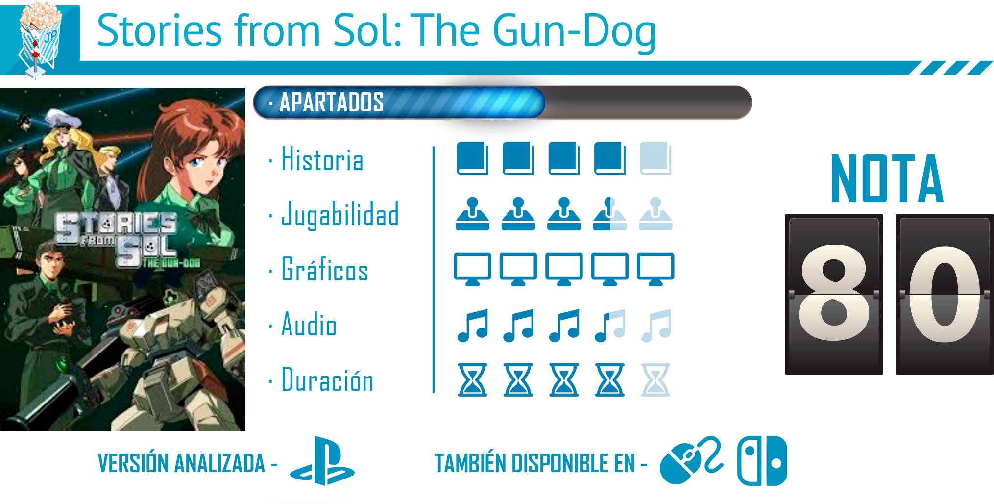 Stories from Sol: The Gun-Dog es una novela visual que logra captar la esencia de las historias de ciencia ficción clásicas a través de una narrativa bien construida y un apartado artístico retro que evoca la nostalgia de las aventuras espaciales de antaño. A nivel jugable destaca por su enfoque en la exploración y las conversaciones bien desarrolladas que refuerzan la sensación de estar dentro de una novela de ciencia ficción clásica; algo que se ve reforzado por un apartado visual y artístico muy potente, con un diseño de personajes detallado y fondos que aportan profundidad al universo del título.