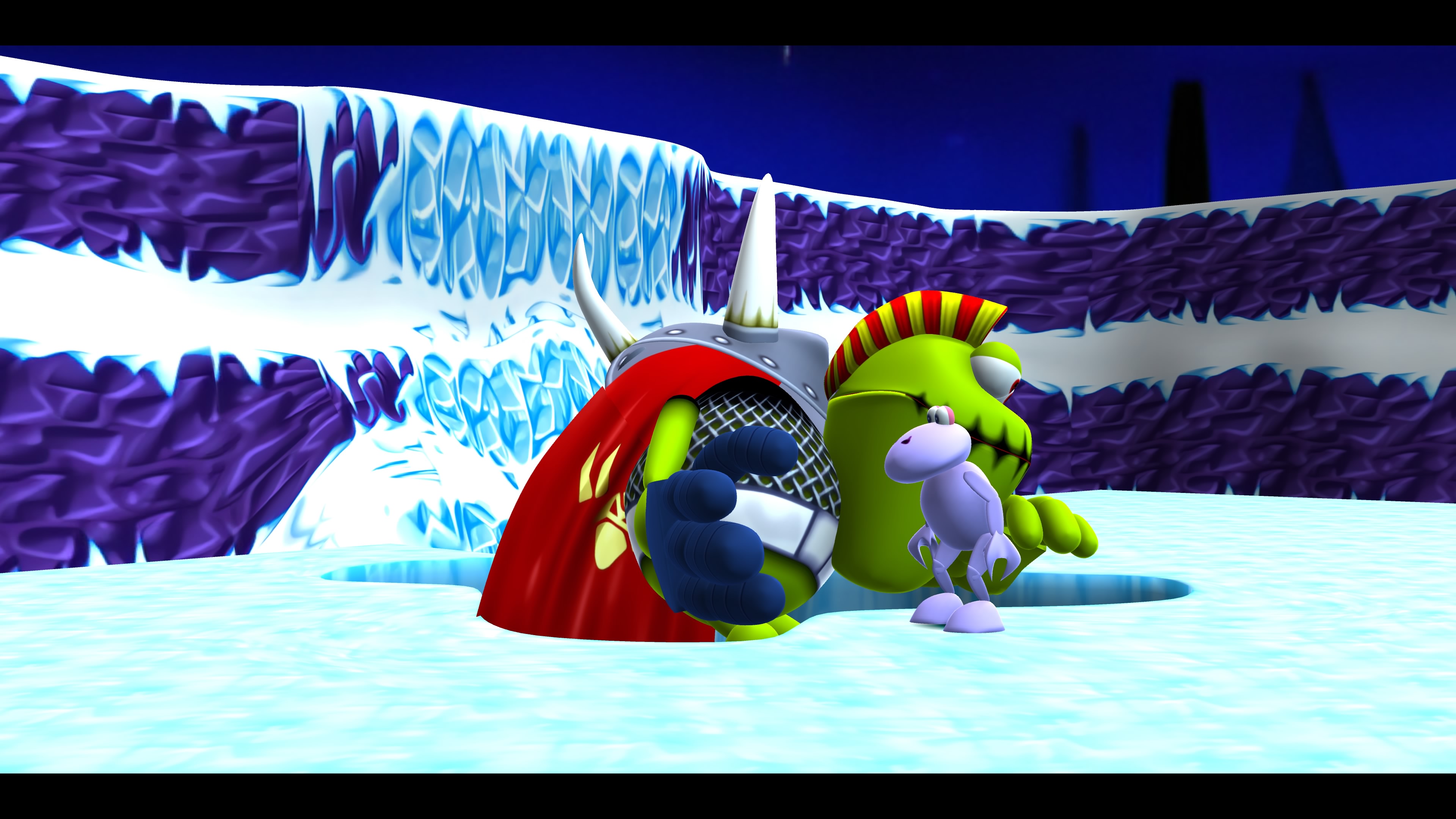 Los escenarios que antaño estaban compuestos por polígonos toscos y texturas borrosas hoy se presentan vibrantes, detallados y llenos de vida, manteniendo ese encanto infantil y desenfadado que tanto caracterizó al juego de 1997. Las texturas se han refinado notablemente, los colores lucen más vivos y los entornos están cargados de elementos que enriquecen la exploración sin saturar la pantalla.