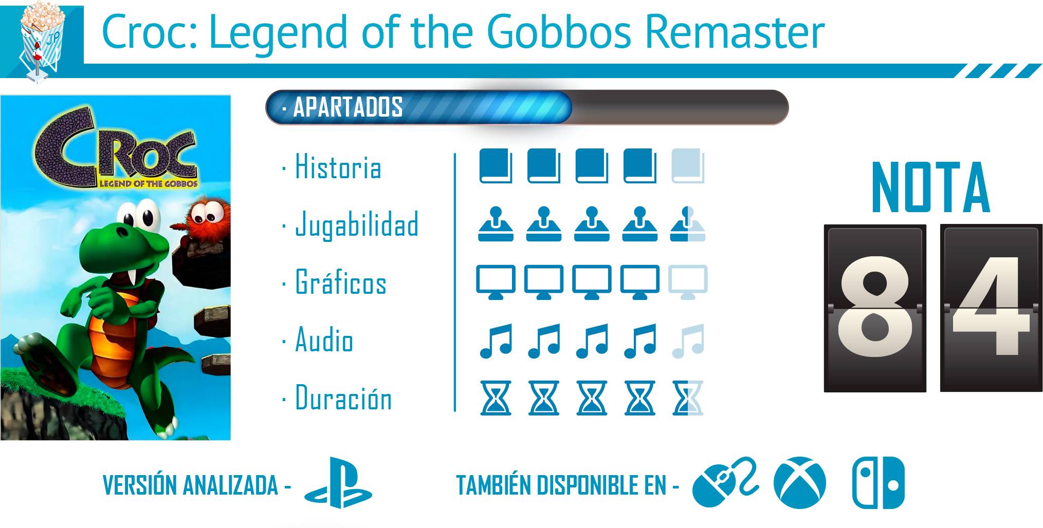 Croc: Legend of the Gobbos Remaster es una carta de amor a una era del videojuego donde la imaginación y el color eran protagonistas. Esta remasterización no pretende reinventar la rueda ni competir con los colosos actuales del género, sino devolvernos a un tiempo más simple con las mejoras necesarias para que la experiencia siga siendo agradable y accesible hoy. Con una jugabilidad sólida, gráficos revitalizados y una banda sonora encantadora, esta nueva versión logra mantener intacta la esencia que convirtió a Croc en un personaje entrañable para toda una generación.