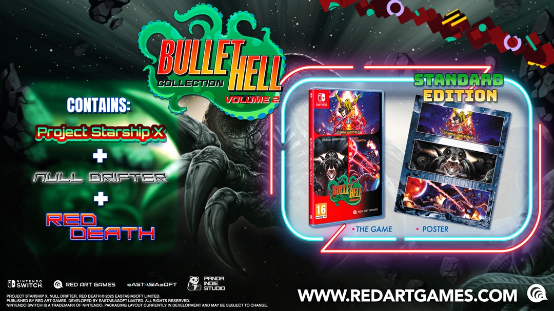 Meridiem ha anunciado que Bullet Hell Collection: Volume 2m una asombrosa compilación que reúne tres intensos shoot’em ups desarrollados por Panda Indie Studio, todos ambientados en el excéntrico universo de Project Starship, una parodia de inspiración lovecraftiana cargada de acción cósmica, humor absurdo y estética retro, llegará en formato físico para Nintendo Switch.
