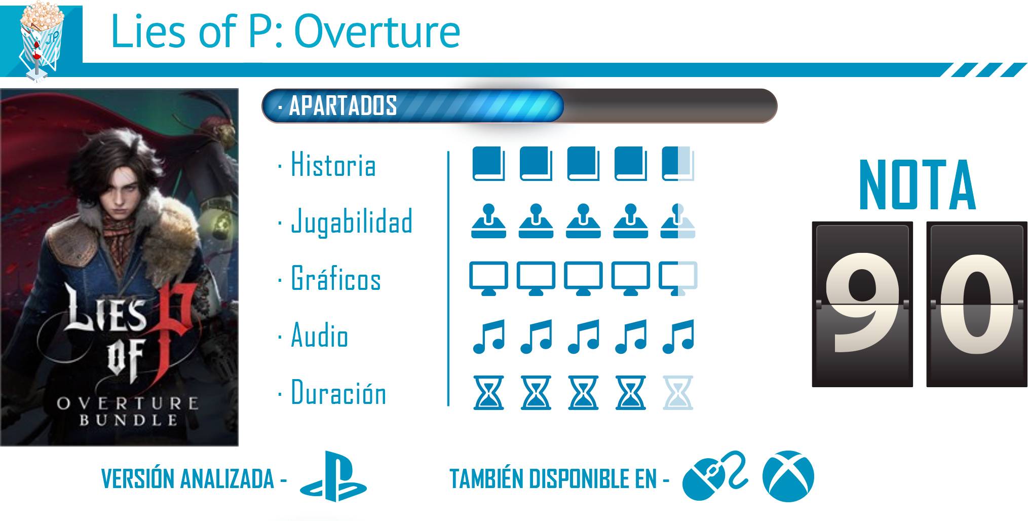 Sin duda, Lies of P: Overture es un añadido valioso que enriquece y profundiza el universo del juego base. No solo amplía la narrativa con una historia que aclara y llena los vacíos del original, sino que también mejora la jugabilidad con nuevas armas, enemigos y modos de dificultad que ofrecen mayor variedad y accesibilidad sin perder la esencia desafiante que caracteriza a la saga. Gráficamente, mantiene la calidad y añade escenarios y detalles que refuerzan la atmósfera opresiva y oscura del mundo de Krat, mientras que el diseño sonoro y la banda sonora envuelven al jugador, intensificando la inmersión y la emoción. En conjunto, esta expansión no solo satisface a los fans que esperaban más contenido, sino que también se presenta como una experiencia completa que puede atraer a nuevos jugadores interesados en una aventura profunda, atmosférica y cuidadosamente diseñada.