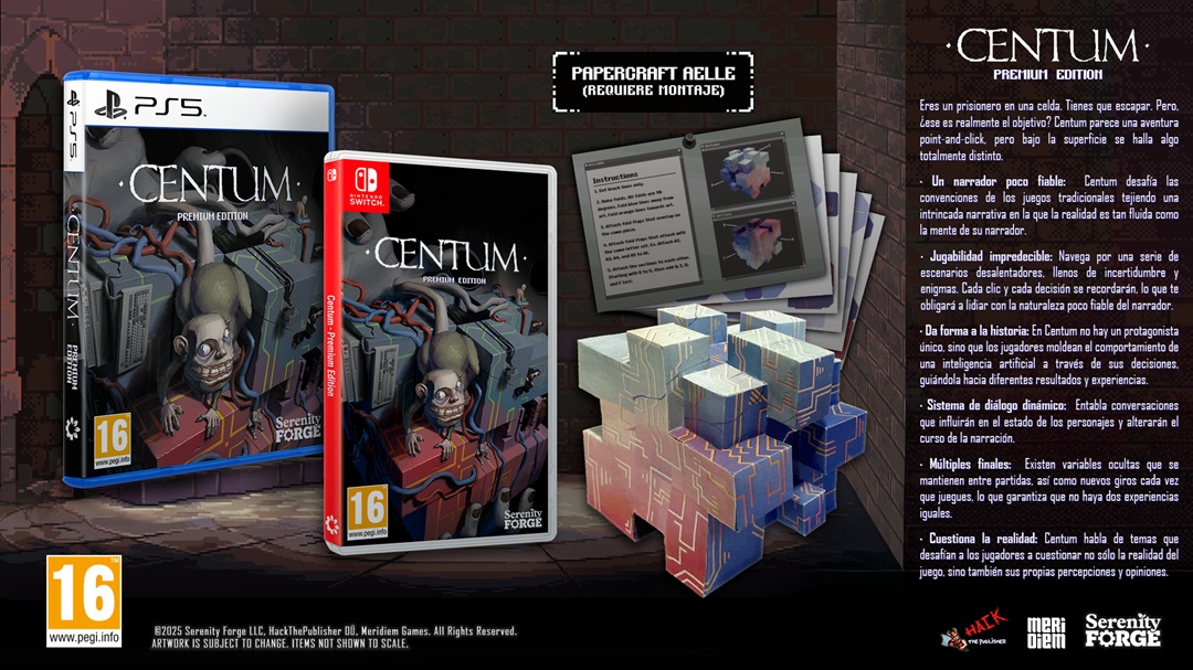 Serenity Forge y Meridiem anuncian que publicarán una edición física Premium de Centum, una aventura narrativa poco fiable en la que todo puede ser mentira. Desarrollado por Hack the Publisher y publicado digitalmente por Serenity Forge, Centum – Premium Edition estará disponible en formato físico para PlayStation 5 y Nintendo Switch en 2025.