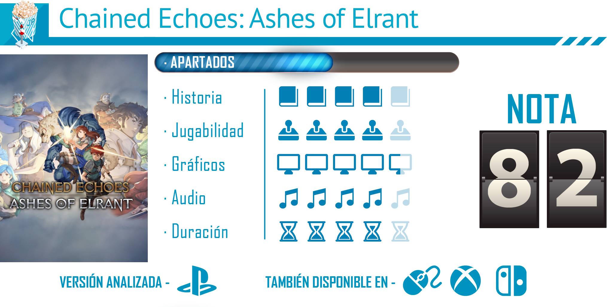 A falta de conocer nuevos proyectos en los que trabaja su creador y sin pistas sobre si trabajará en una nueva entrega de Chained Echoes o preferirá construir una historia totalmente nueva, podemos ir apaciguando nuestro mono con el DLC de Chained Echoes. Titulado Ashes of Elrant, este nuevo contenido amplía la historia principal, añade un nuevo personaje, nuevas zonas y diversos elementos que enriquecen la experiencia original.