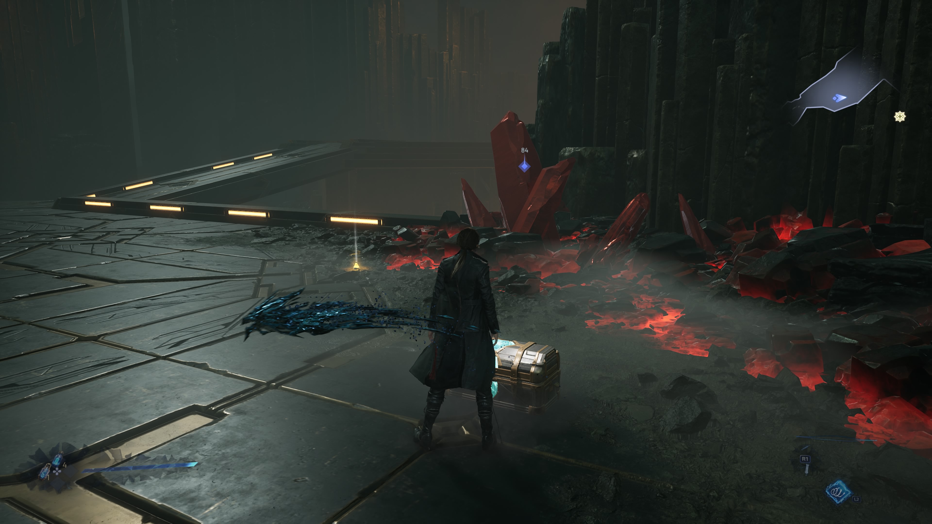 Los escenarios son, sin duda, uno de los grandes aciertos visuales de Lost Soul Aside. La combinación de elementos neón con estructuras en ruinas crea un universo que se siente vivo y fascinante, con un estilo que invita a la exploración, aunque los mapas sean lineales. La paleta de colores —con predominancia de azules, violetas y matices cálidos— no solo aporta belleza, sino que también transmite estados de ánimo distintos según la zona.
