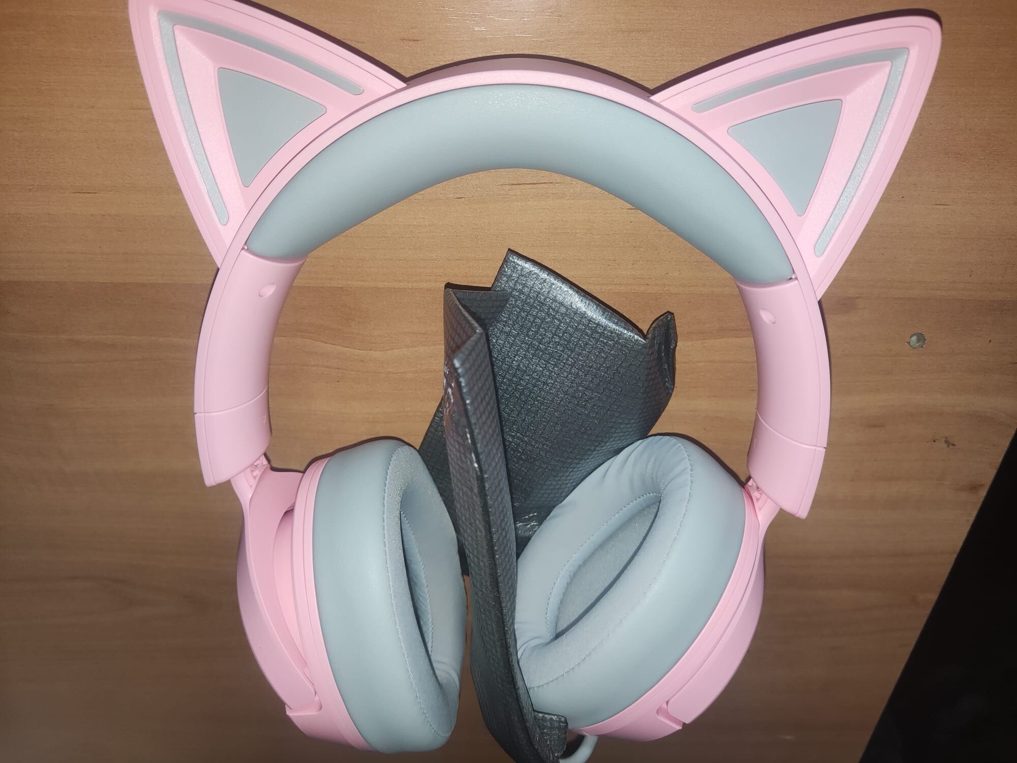 En cuanto a su construcción, el Kraken Kitty V3 X transmite solidez sin caer en lo pesado. No usa materiales de gama alta, pero lo que ofrece se siente resistente y hecho para aguantar el trote diario. La diadema es regulable y se ajusta con facilidad a distintos tamaños de cabeza, aportando comodidad sin apretar de más. Las orejas de gato, aunque en este modelo no cuentan con iluminación, están perfectamente integradas en el diseño y no dan la sensación de ser un accesorio frágil