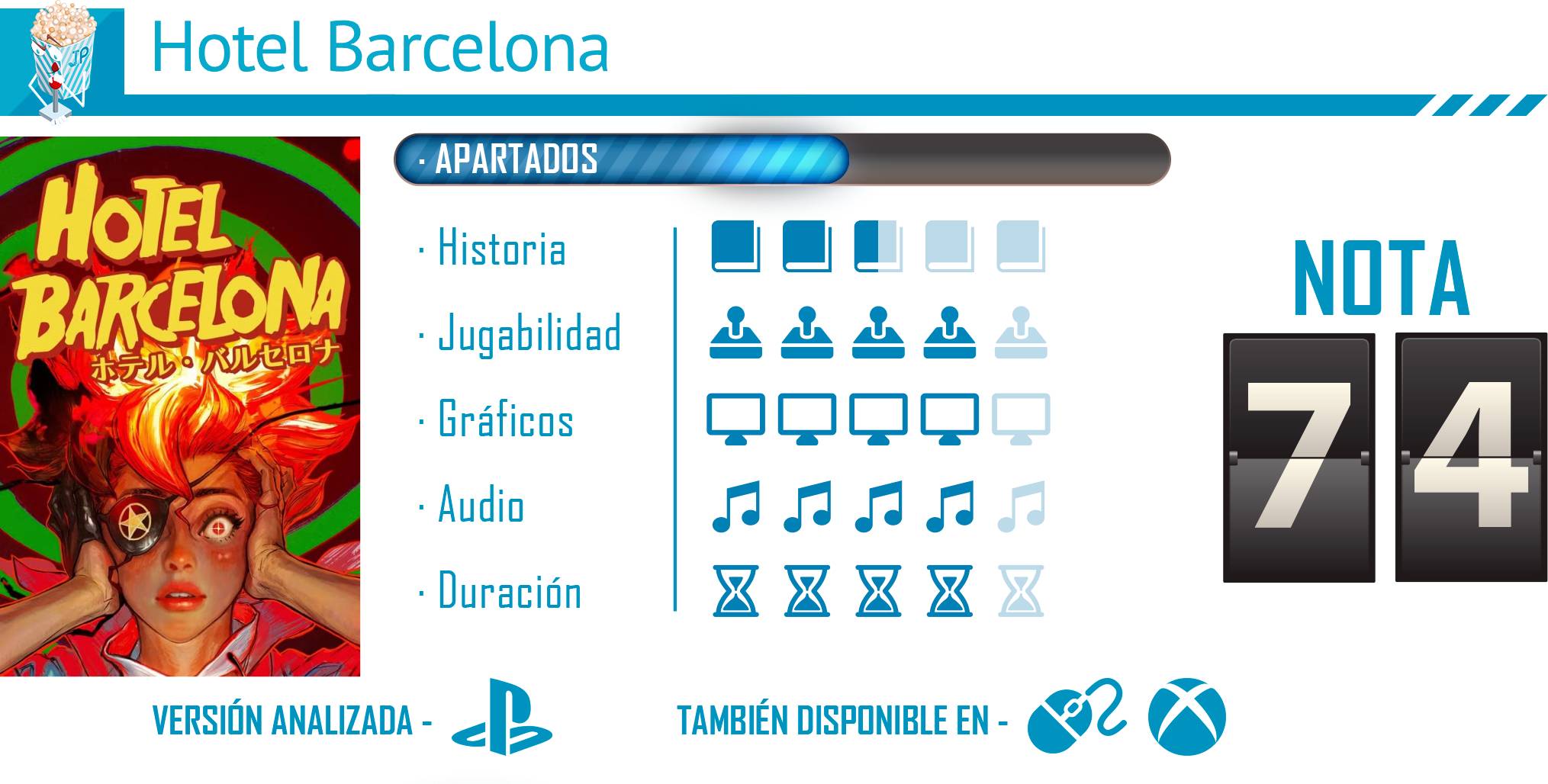 Hotel Barcelona es un juego que no deja indiferente. Con su mezcla de roguelite clásico, historia excéntrica y colaboración de dos de los creativos más locos de la industria —Swery y Suda51— ofrece una experiencia singular que combina riesgo, humor y caos en cada run. Su universo es tan bizarro como cautivador, y la sensación de avanzar a base de ensayo y error hace que cada muerte se sienta parte de un aprendizaje constante. Sin embargo, no todo es perfecto: el juego tiene problemas de control y optimización que pueden frustrar, y su apartado visual in-game y mecánicas a veces toscas lo alejan de la perfección. Aun así, su personalidad arrolladora, banda sonora energética y sistema de fantasmas le dan un carácter único que lo hace memorable.