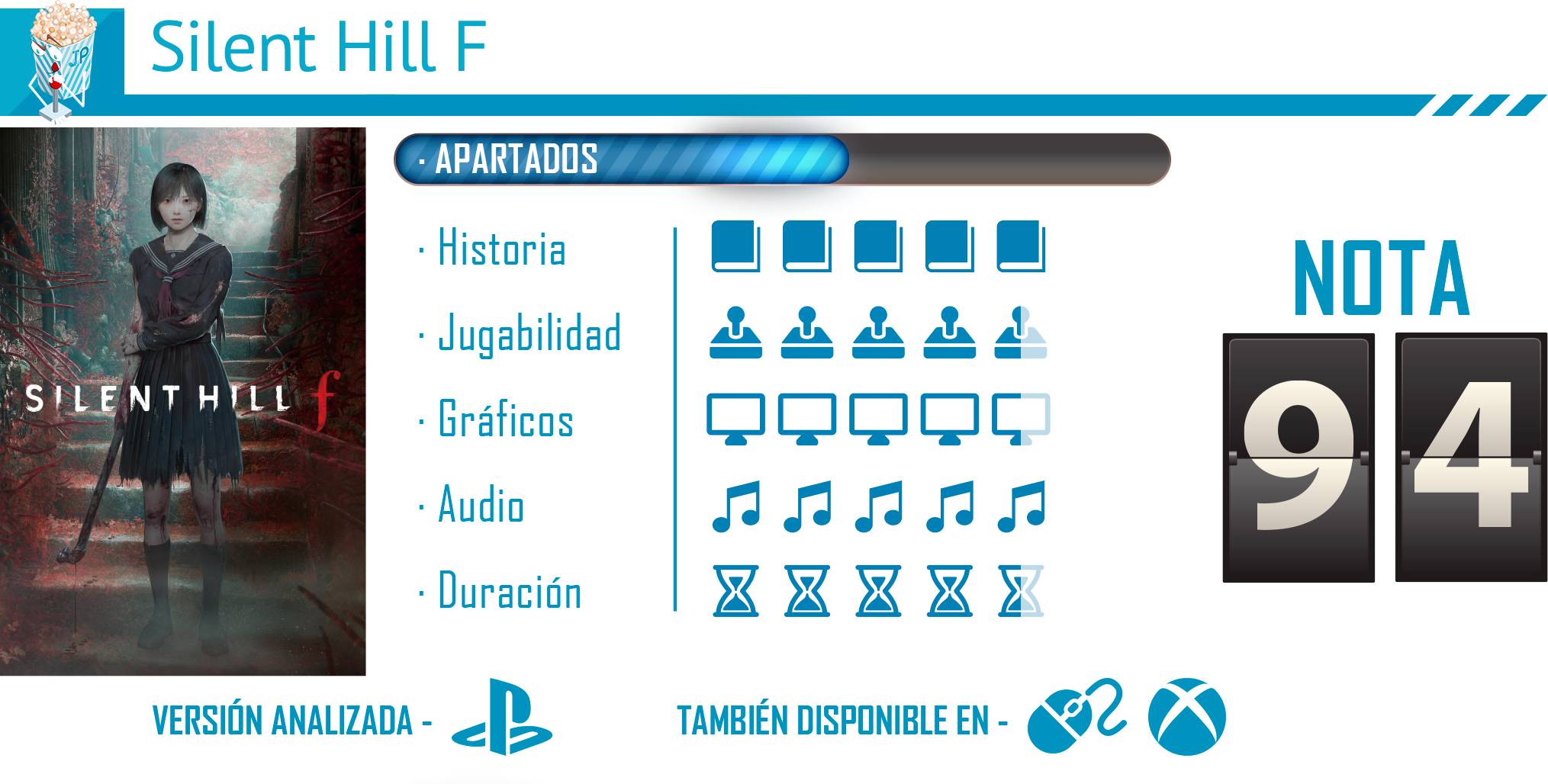 Silent Hill f es una aventura que atrapa desde el primer momento. Entre niebla y flores rojas, el Japón rural que explora Hinako se siente vivo y lleno de tensión, mientras que los mundos de pesadilla ofrecen momentos inquietantes y memorables. La dirección artística deslumbra, los enemigos son originales y perturbadores, y la música de Akira Yamaoka junto a los efectos de sonido refuerzan la inmersión. Los puzles, la exploración y la gestión de recursos hacen que cada decisión importe, y los múltiples finales invitan a rejugar. Aunque los combates pueden sentirse algo repetitivos y los enemigos predecibles tras varias horas, el juego brilla por su atmósfera, su estilo visual único y su narrativa envolvente: un título que todo fan de la saga no puede dejar pasar.