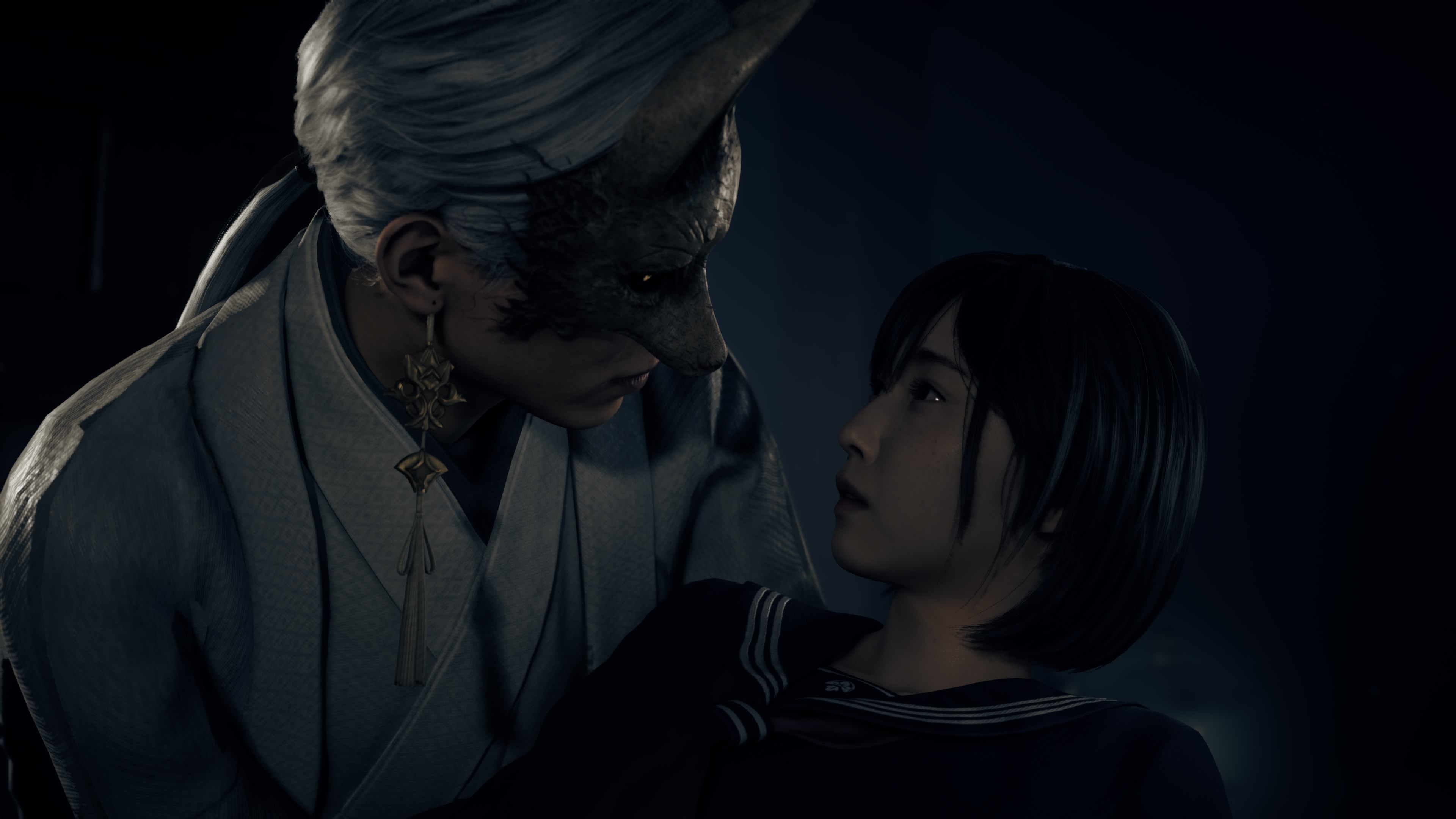 Y por otro lado tenemos un mundo onírico representado por templos japoneses laberínticos, que tiene su propia lógica, enemigos únicos y armas diferentes. Aquí también aparece un misterioso joven con máscara de zorro que parece guiarnos, aunque su verdadero papel queda deliberadamente ambiguo-