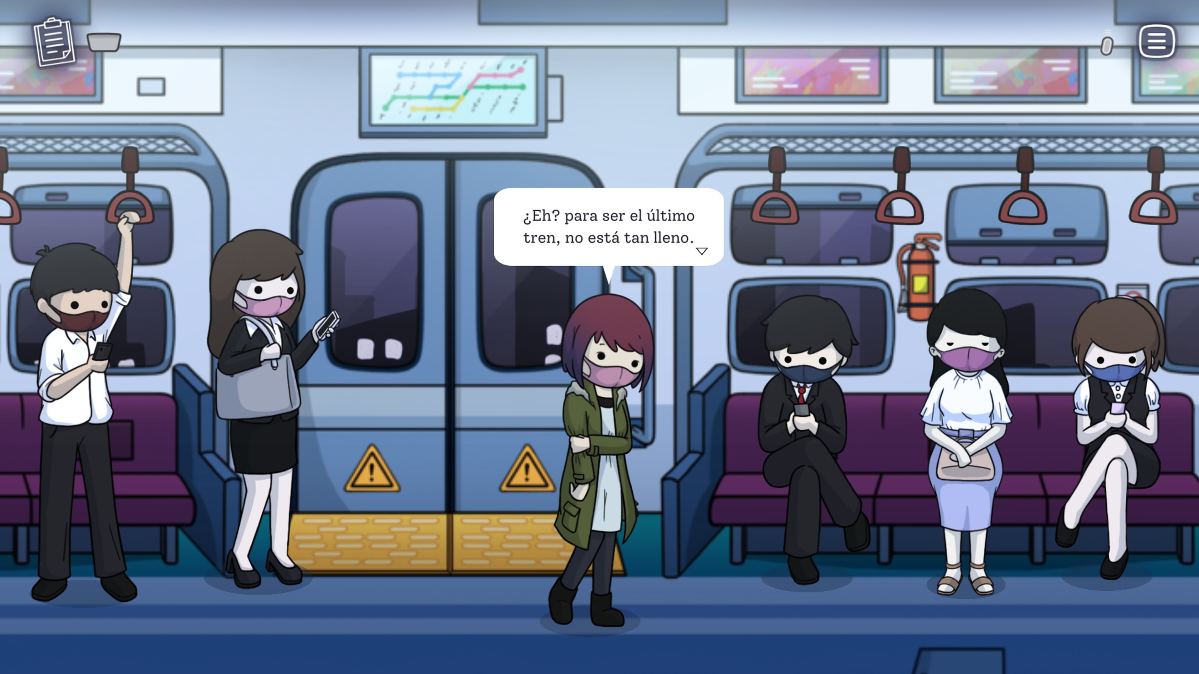No hay mucho más que hacer aparte de caminar y escuchar, y eso hace que todo sea breve: en menos de una hora puedes recorrer los dos viajes del tren. Cada conversación aporta algo, y aunque me encontré con algún detalle torpe —como un objeto que se puede atravesar o menús que responden un poco mal—, no arruina la experiencia. Al final, todo se trata de dejar que las historias de los pasajeros calen un poco en ti y disfrutar del ritmo pausado del juego.