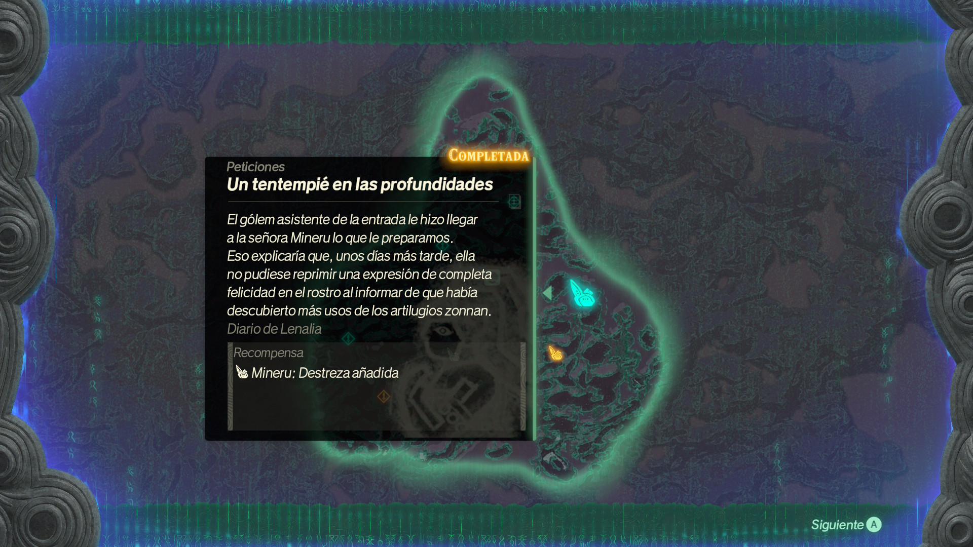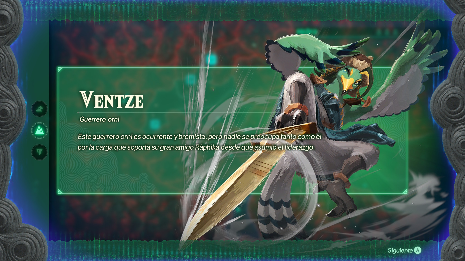 Mientras acompaña a Rauru y al resto de sabios, Zelda intenta encontrar la forma de volver a su tiempo, aunque todo apunta a que su papel en el pasado es más importante de lo que imaginaba. Ese conflicto entre regresar o quedarse es lo que mueve buena parte de la trama. Y, por el camino, aparecen figuras inesperadas, como Cálamo, un kolog bastante peculiar, o un gólem misterioso que parece destinado a cargar con parte del peso que, en otra época, recaería sobre Link.