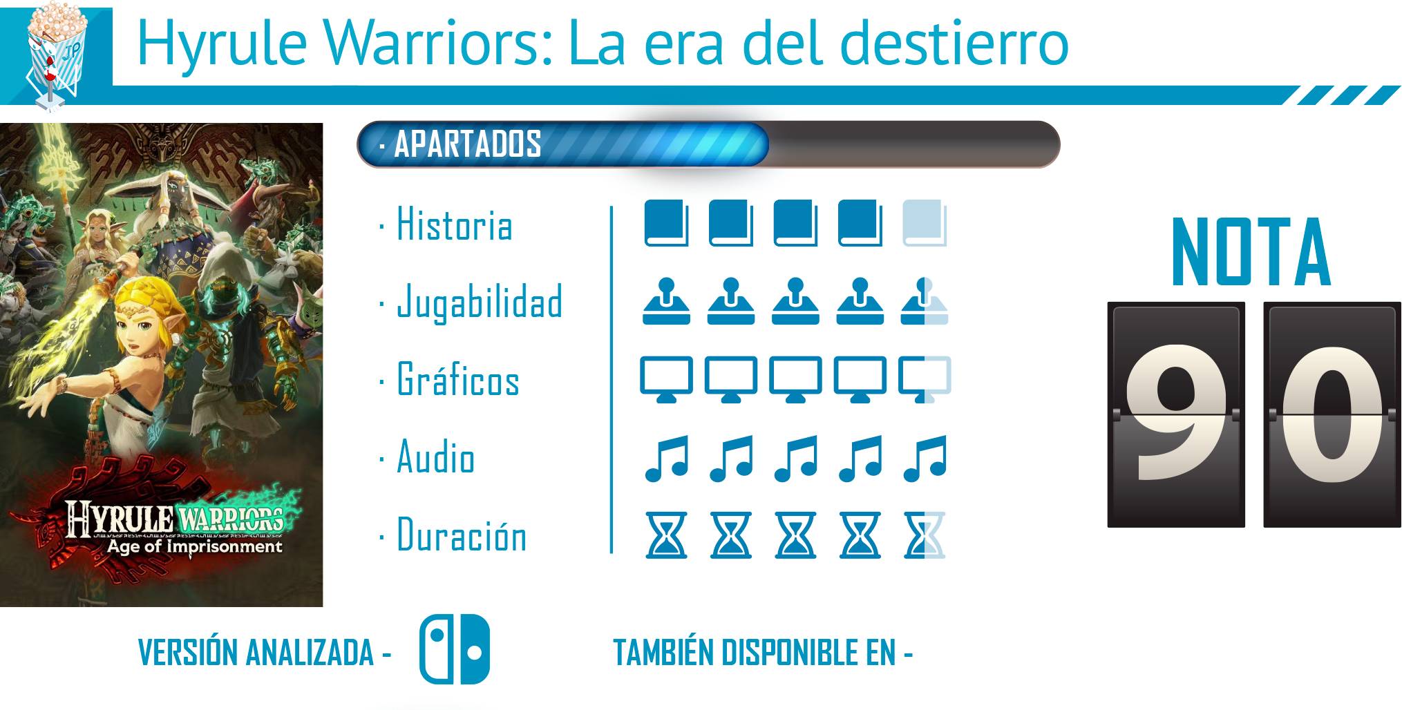 Jugar a Hyrule Warriors: La era del destierro es sumergirse de lleno en un Hyrule antiguo lleno de secretos, combates espectaculares y una historia que amplía y enriquece el universo de Tears of the Kingdom. Cada batalla se siente intensa y satisfactoria, gracias a un sistema de combate profundo, mecánicas estratégicas y un uso brillante de los artilugios zonnan. El apartado gráfico y artístico luce increíble en Nintendo Switch 2, y la banda sonora consigue elevar cada momento de la acción, mezclando épica y nostalgia de manera impecable. Es, sin duda, una experiencia imprescindible para los fans de Zelda y para quienes disfruten de un musou lleno de sorpresas.