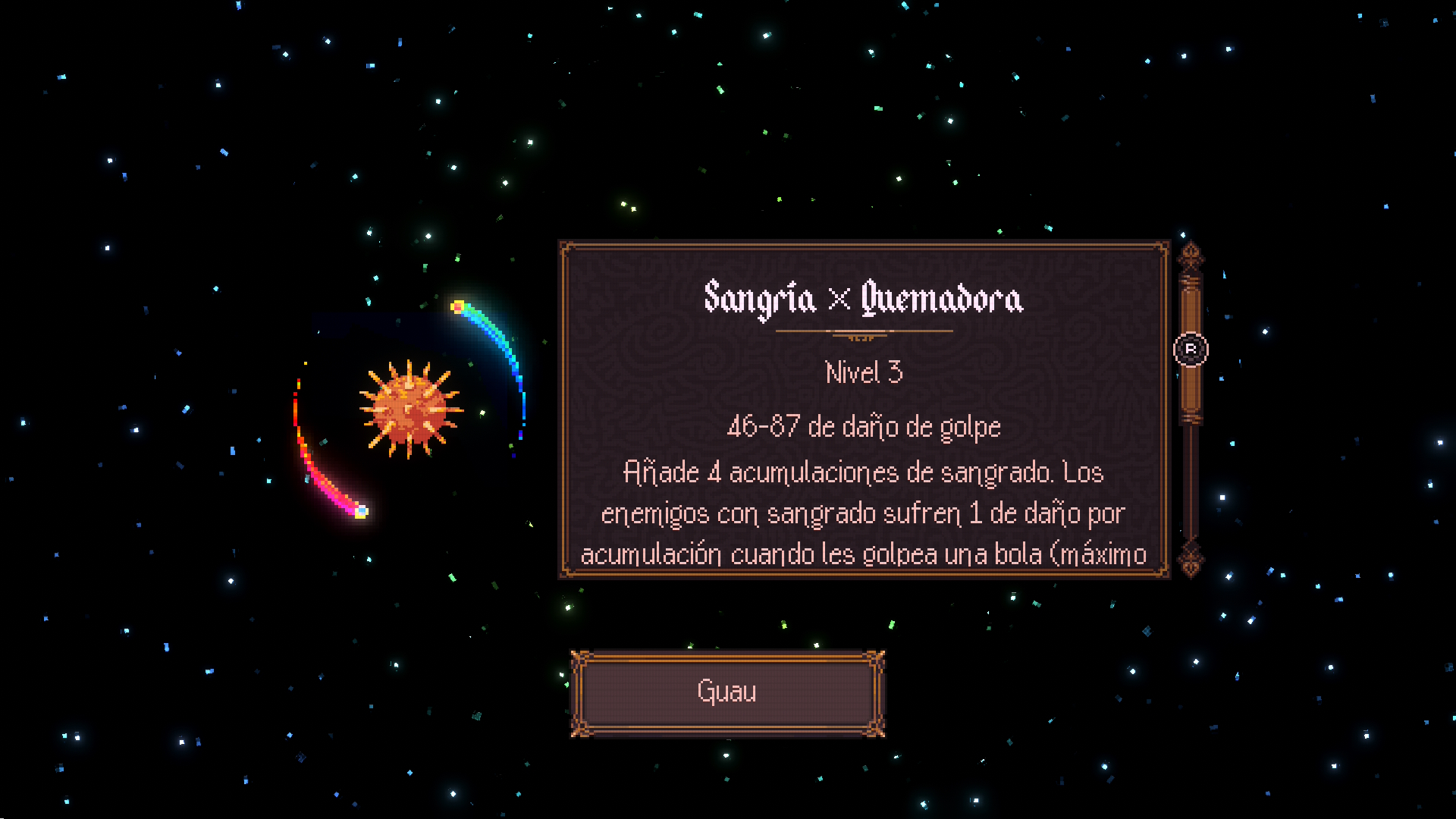 Tenemos una cantidad limitada tanto de bolas especiales que podemos llevar como de objetos pasivos. Estos pueden ir desde mayor cadencia de disparo, mayor daño de las bolas especiales, objetos de protección o de ataque. Algunas de ellas también se pueden combinar.