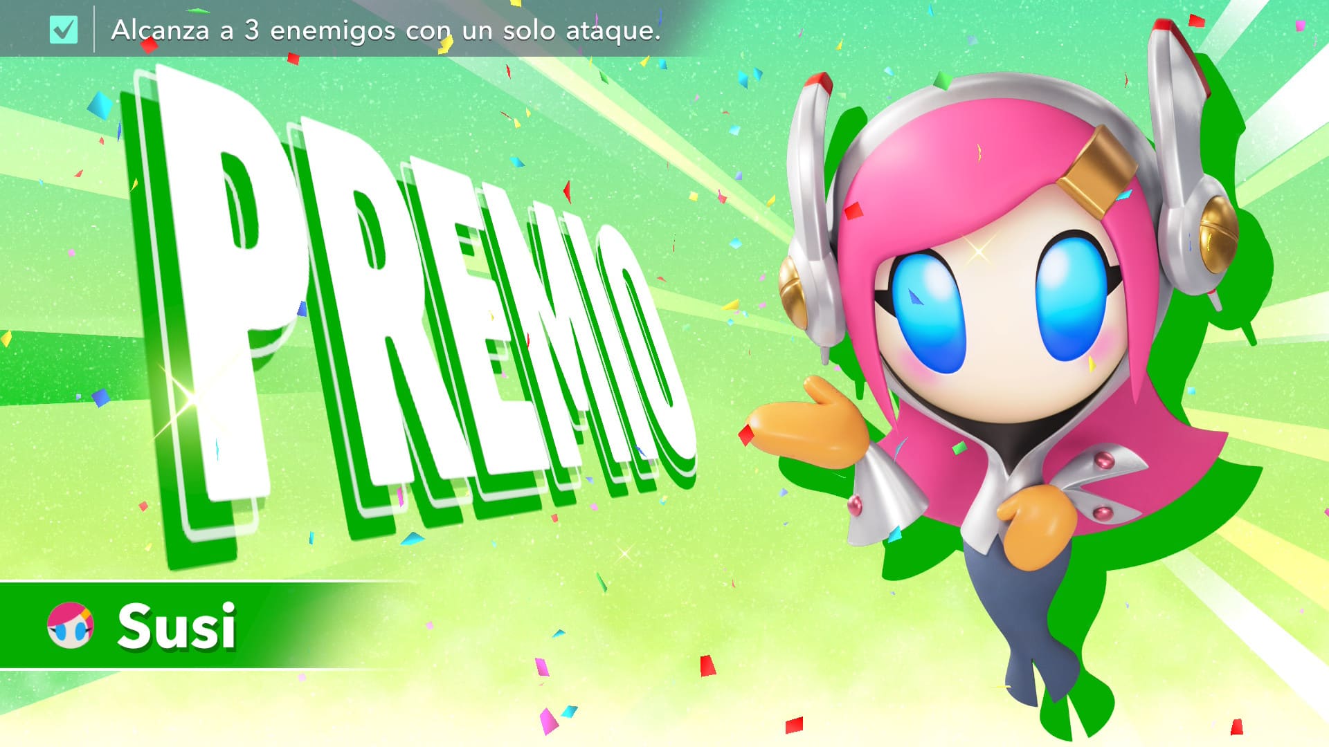 Lo que más destaca es la influencia directa de Super Smash Bros. Ultimate en el diseño: desde menús y tipografías hasta los marcadores y efectos visuales, se nota el sello personal de Sakurai. Incluso la pantalla de título se siente muy familiar para quienes han jugado a Smash. Esto le da coherencia a la obra, pero al mismo tiempo puede hacer que el juego se perciba más como un “juego de Sakurai” que como un juego de Kirby, sobre todo considerando la gran cantidad de personajes que aparecen y que no siempre se relacionan directamente con la saga.