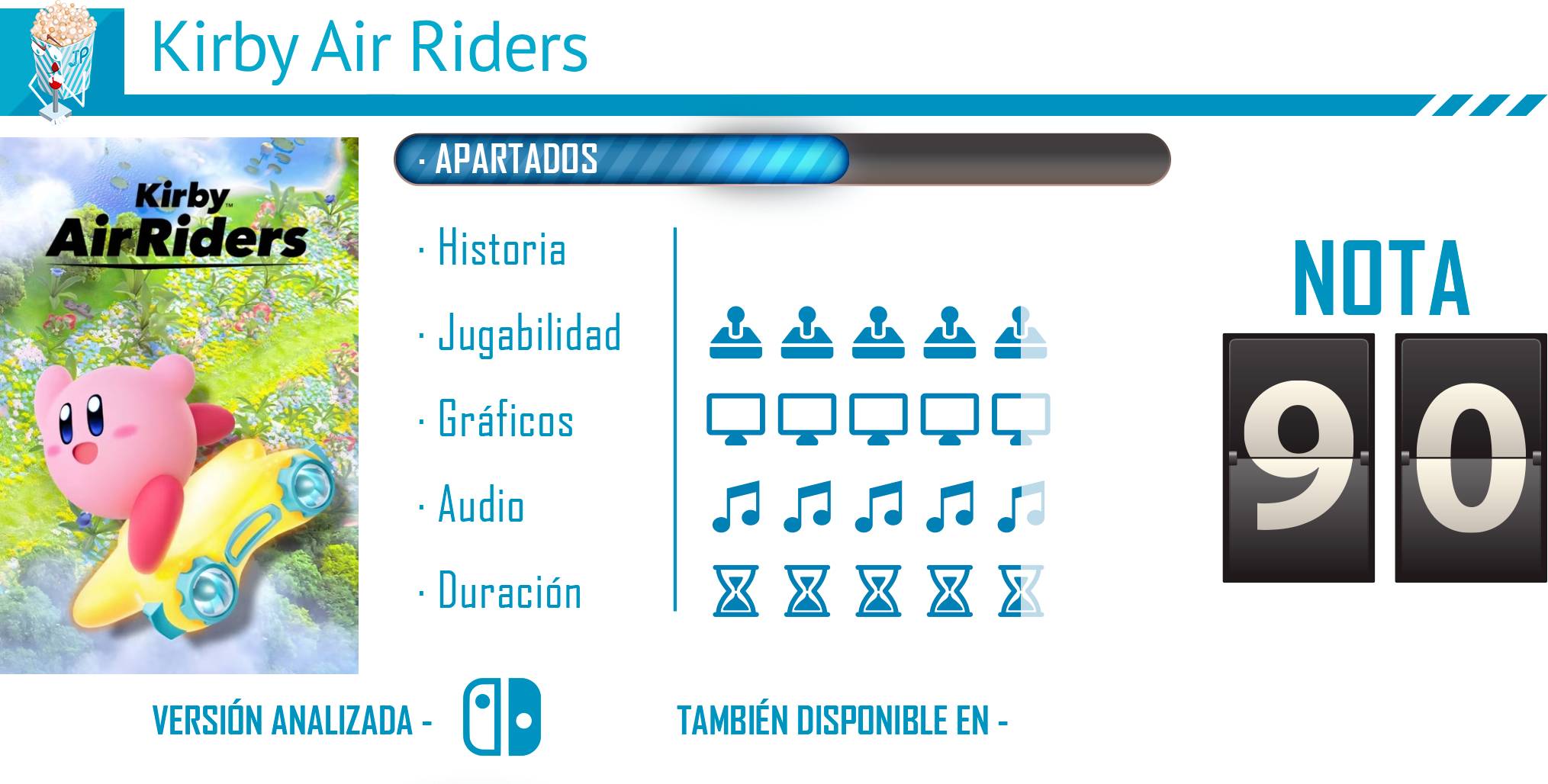 Kirby Air Riders no es simplemente un juego de carreras, sino una experiencia que mezcla velocidad, estrategia y diversión en múltiples modos, cada uno con su propia personalidad. Desde las frenéticas carreras de Air Ride hasta el caos controlado de las Pruebas Urbanas y la narrativa ligera pero entretenida de Escapada, el juego logra mantener la esencia de Kirby mientras introduce mecánicas frescas y adictivas. La accesibilidad de sus controles combinada con la profundidad estratégica de sus habilidades y objetos convierte cada partida en un reto distinto, ya sea en solitario o en multijugador. Visualmente colorido y fluido, con un apartado sonoro que acompaña perfectamente la acción, Kirby Air Riders demuestra que Masahiro Sakurai sigue dominando la creación de experiencias únicas que mezclan diversión inmediata con detalles de diseño muy cuidados