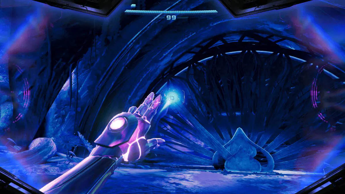También hay decisiones visuales muy acertadas ligadas a la identidad propia de esta entrega. Los poderes psíquicos no solo definen la jugabilidad y la narrativa, sino también el apartado gráfico. Elementos de color morado salpican los escenarios, señalizando mecanismos, puertas y estructuras con las que interactuar, creando un lenguaje visual claro y coherente. Cuando Samus activa estas habilidades, el visor se tiñe de esos mismos tonos, la interfaz se distorsiona ligeramente y la percepción del entorno cambia, reforzando la sensación de estar manipulando algo que va más allá de lo físico.