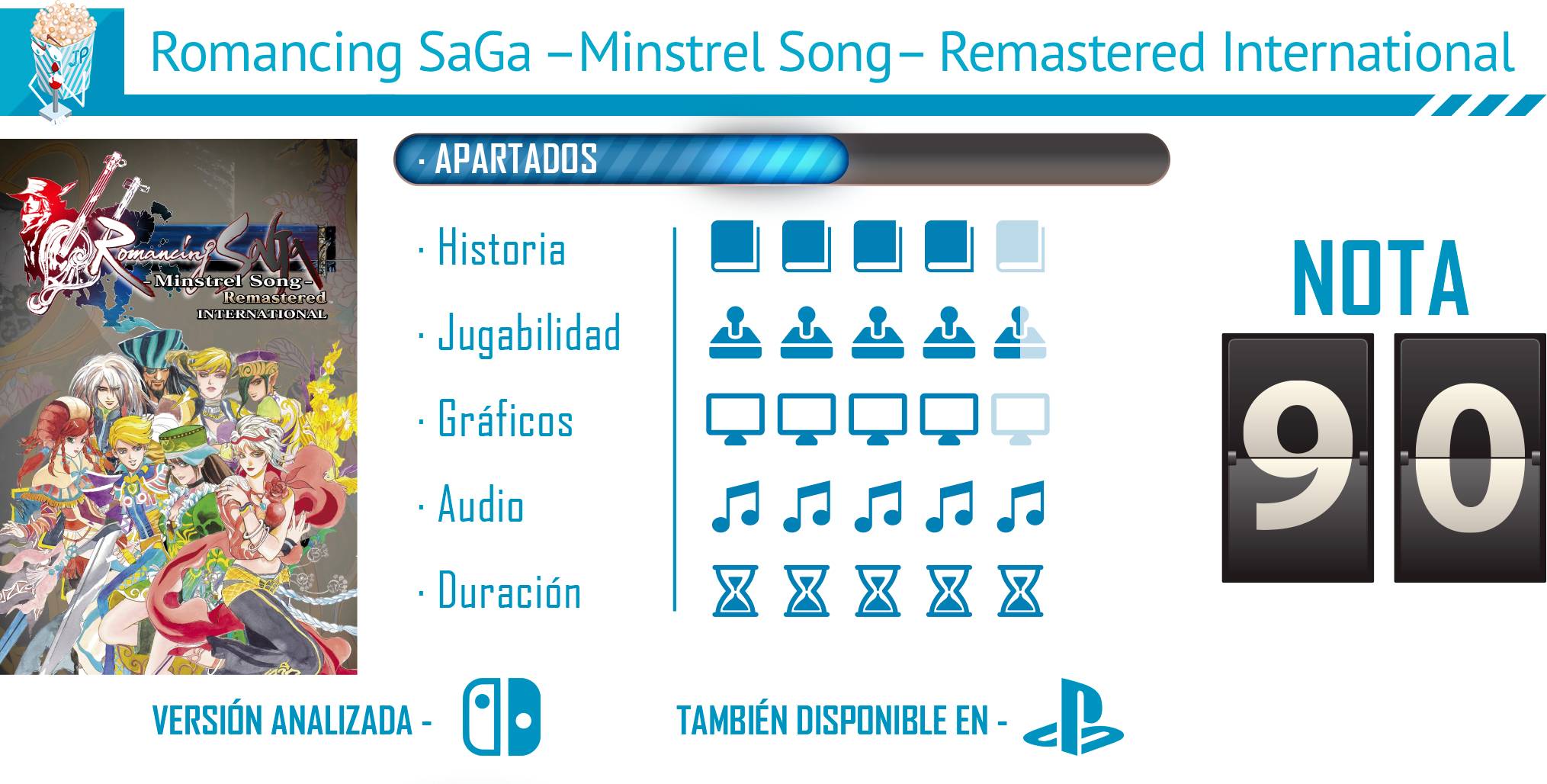Romancing SaGa –Minstrel Song– Remastered International es uno de esos juegos que no intenta gustar a todo el mundo, y precisamente por eso resulta tan especial. Su estructura abierta, su falta de concesiones y su forma tan particular de entender el JRPG lo convierten en una experiencia exigente, pero también profundamente gratificante para quien esté dispuesto a adaptarse a sus reglas. Esta edición no solo recupera un clásico con respeto y mimo, sino que lo hace más accesible que nunca gracias a mejoras de calidad de vida y, sobre todo, a una traducción al castellano largamente esperada. No es un juego cómodo ni inmediato, pero sí honesto, valiente y con una personalidad arrolladora. Un viaje que recompensa la curiosidad, la paciencia y el gusto por el rol más clásico y libre, y que demuestra que algunos juegos envejecen no por sus ideas, sino por la forma en la que el jugador decide acercarse a ellas.