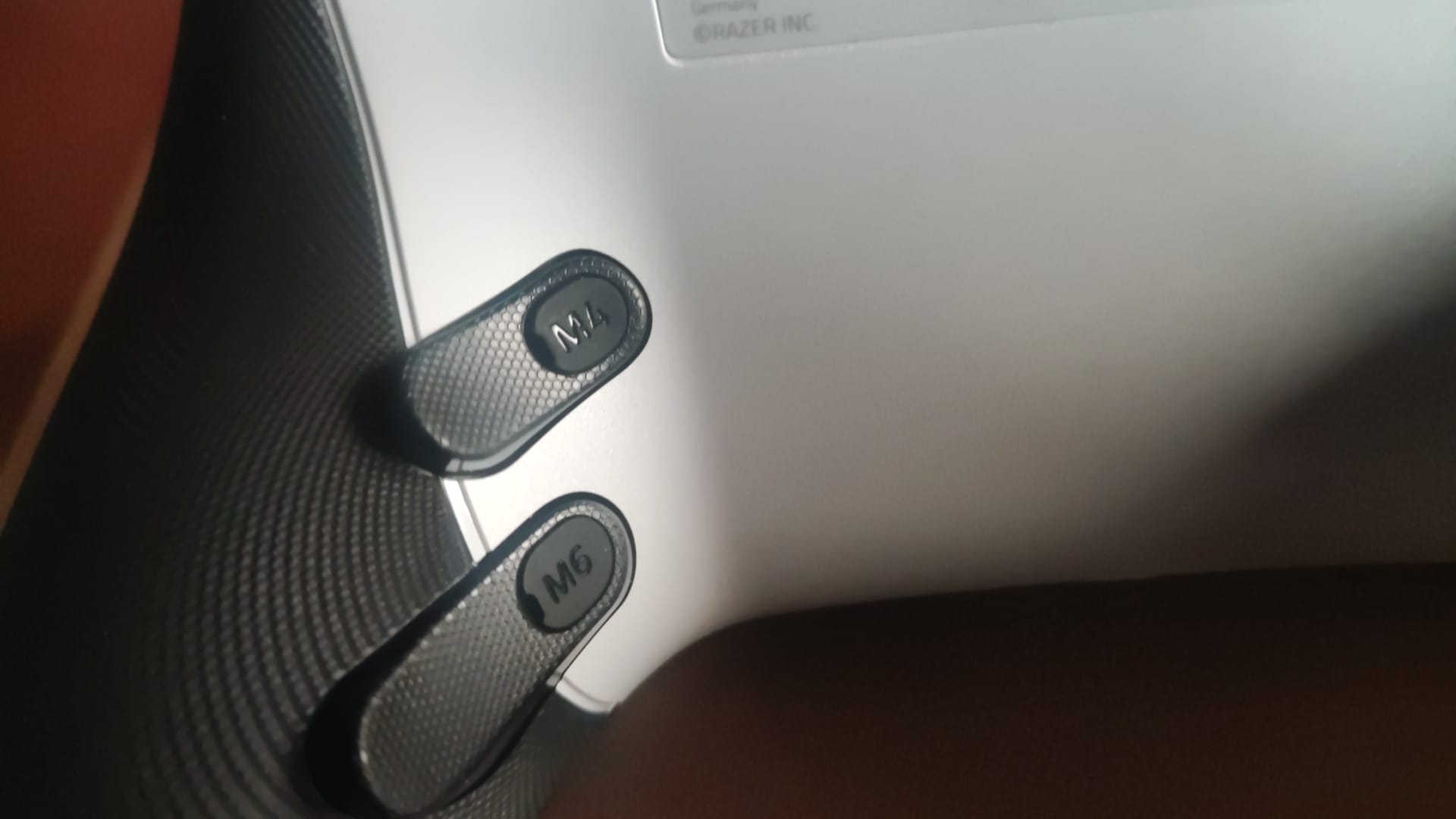 En la parte trasera aparecen los cuatro botones adicionales personalizables, uno de los grandes reclamos de este modelo. Estos pulsadores pueden retirarse mediante el pequeño destornillador incluido, lo que permite anularlos por completo o reducir su número si no nos sentimos cómodos con los cuatro. No es un proceso inmediato ni especialmente rápido, pero ofrece un nivel de personalización poco habitual y se agradece tener esa libertad de configuración.